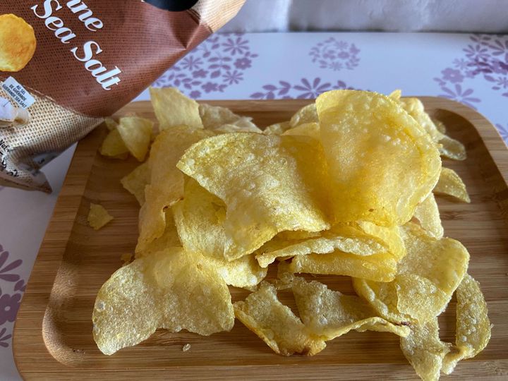 シンプルな塩味のポテトチップスですが、薄めのカリッとした食感が香ばしく、まろやかな塩味が絶妙に効いてとってもおいしいです。