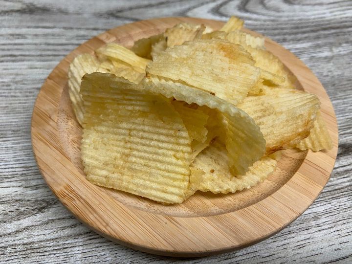 3つ目はカマンベールチーズ味です。塩バターと見た目はほぼ変わらず波型の厚切りカットですが、食べた瞬間に味が全然違うのがわかります。チーズの味がしっかり感じられ、塩味とのバランスも絶妙。くせのないチーズ風味なので、子どもから大人まで楽しめる味だと思います。