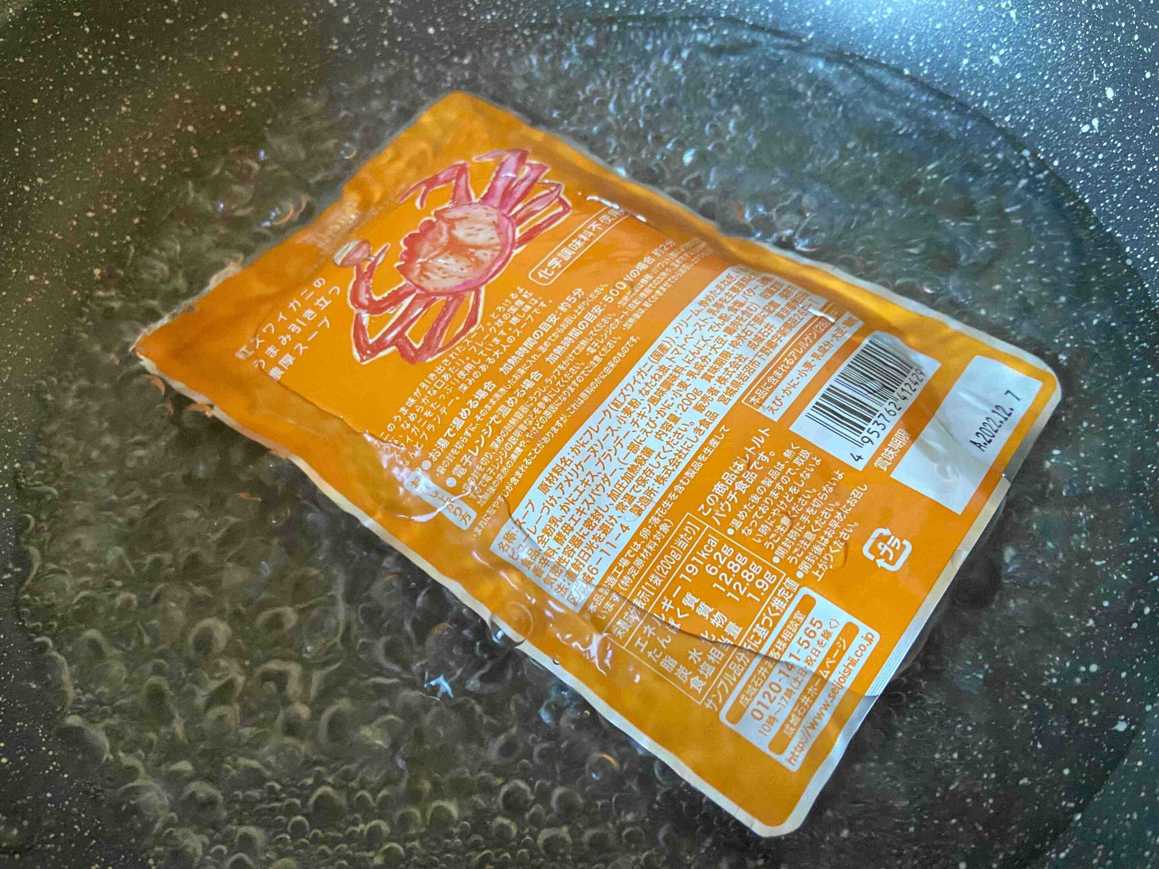 蟹の旨みがギュギュっと凝縮されていてとっても濃厚で贅沢な味わい!蟹フレークもたっぷりと入っていて、温めただけのレトルトスープとは思えないほどの高級感があります。