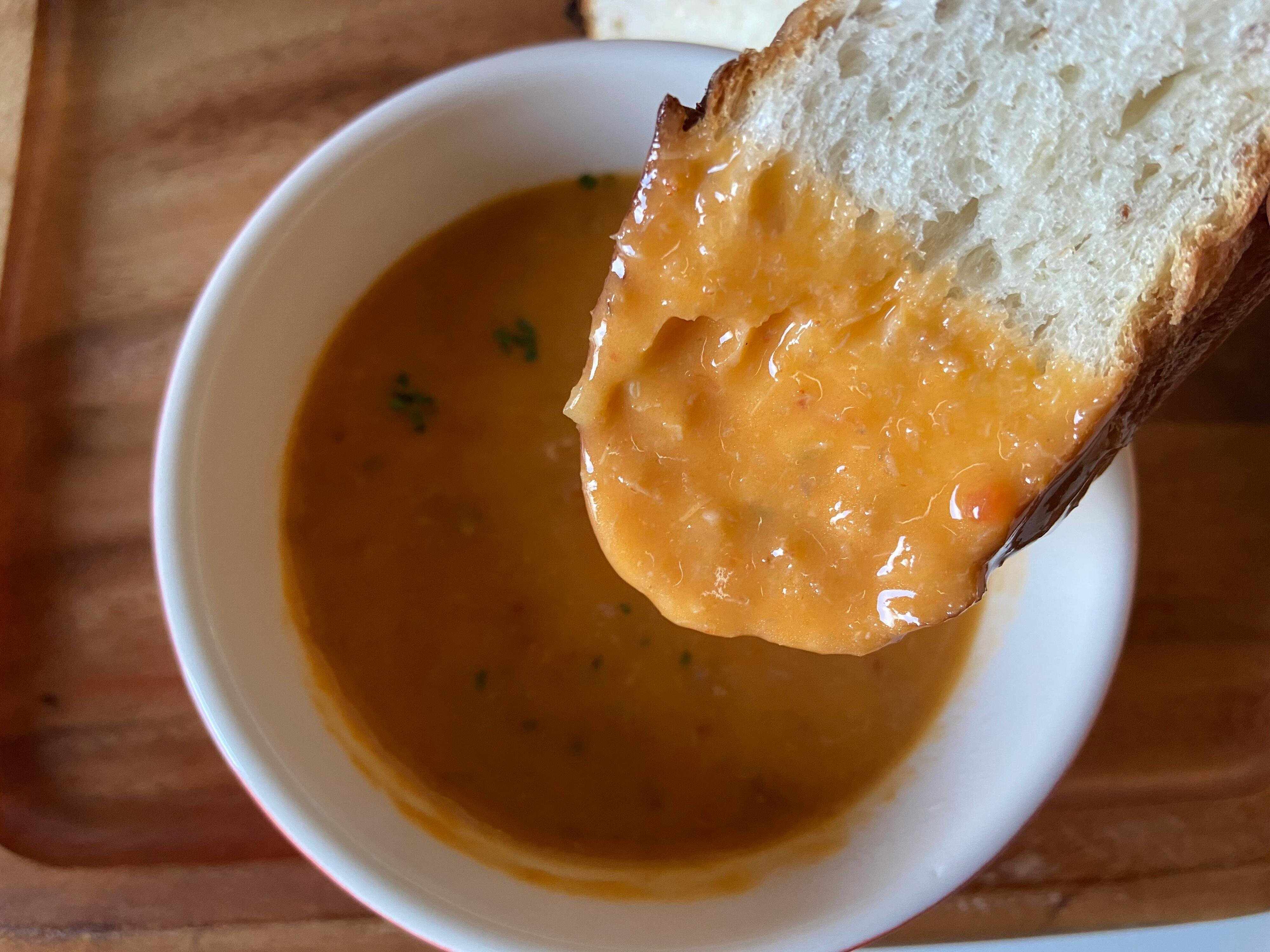 濃い蟹の風味にまろやかでクリーミーなスープは、つけパンスタイルで食べても最高!