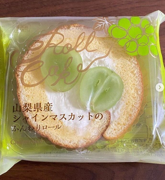 人気のシャインマスカットロールは、ごろっと入ったマスカットのさっぱりとした甘みと、ふんわりとしたスポンジ、クリームとの相性が抜群です。スポンジも香り高く、シャインマスカットのショートケーキを食べているような感覚で味わえますよ。