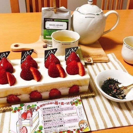 こちらのシャトレーゼの苺ケーキには、「あまおう」「さぬきひめ」「とちおとめ」「もういっこ」と4つの種類の苺が使われています。苺の食べ比べができる珍しいケーキです。