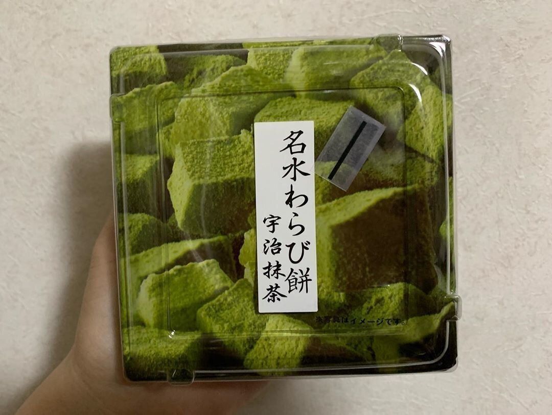 名水わらび餅 宇治抹茶は、餅のモチモチ感と本格的な抹茶の味わいが楽しめる一品です。甘すぎないため、何個でも食べることができそう。お値段は260円。抹茶好きにはたまりません。