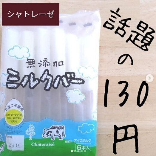 6本で130円というお値段が魅力のミルクバー。安いだけでなく、乳化剤・安定剤・香料・着色料不使用と昔懐かしい味わいのアイスクリームです。卵を使っていなので、卵アレルギーのかたでも安心して召し上がっていただけます。