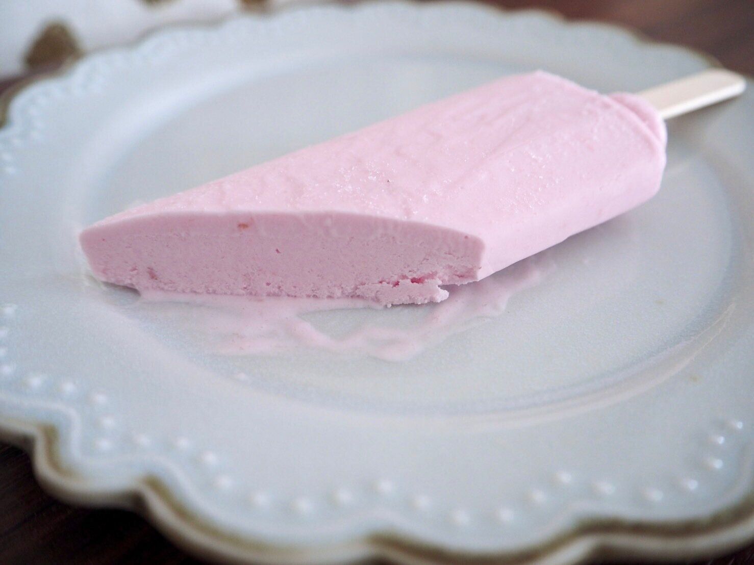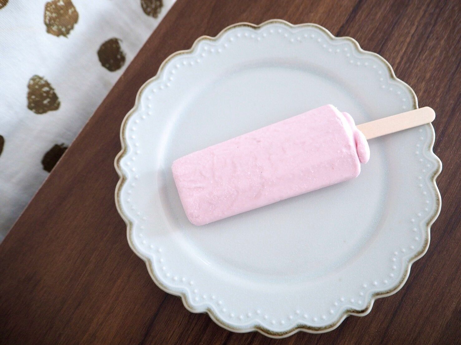 断面からは分かりづらいですが、アイスの中に苺の果肉が入っておりフレッシュな甘酸っぱさを感じることができます。