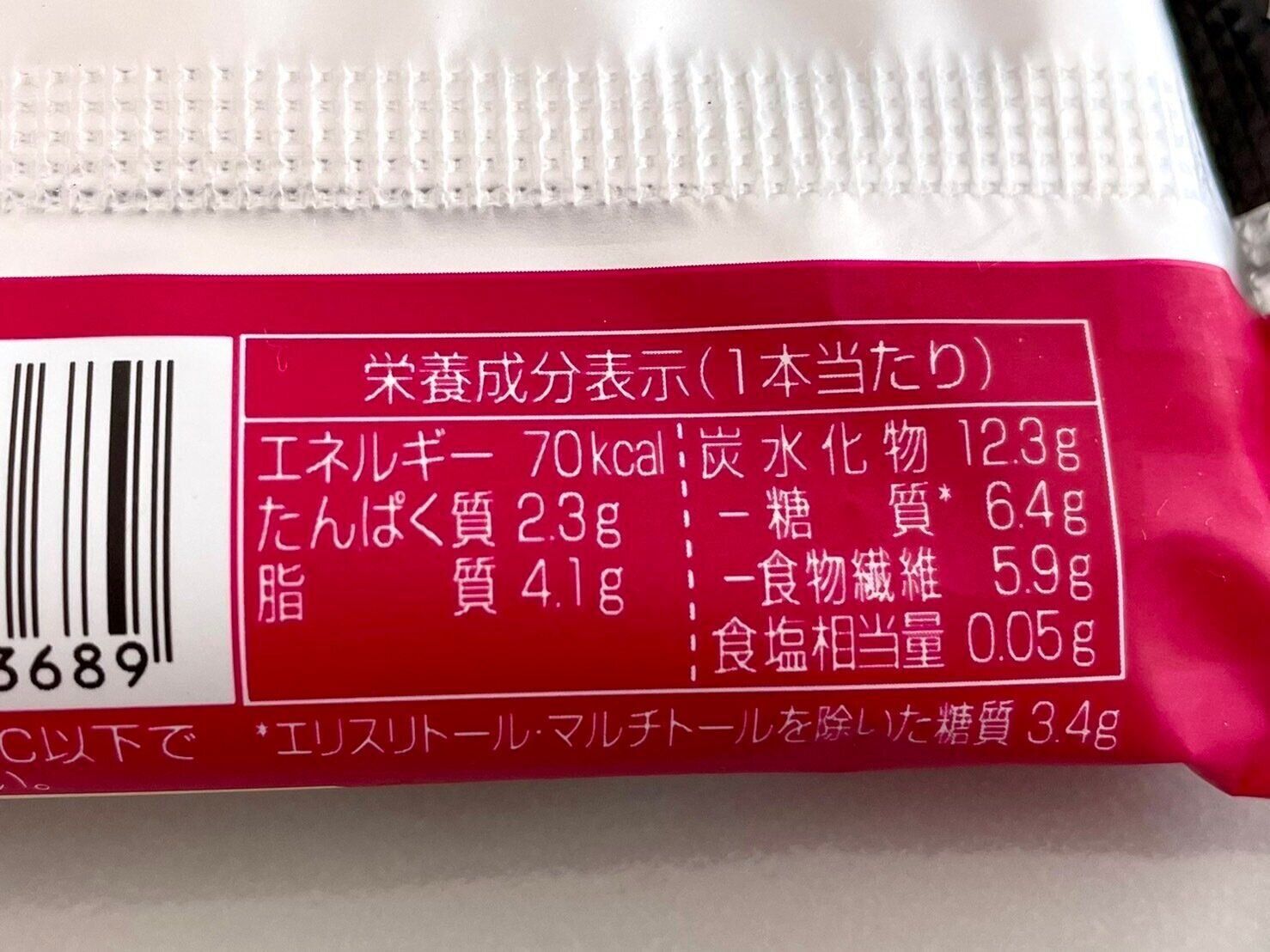裏側の栄養成分を拝見すると、1本あたりたったの70kcal。