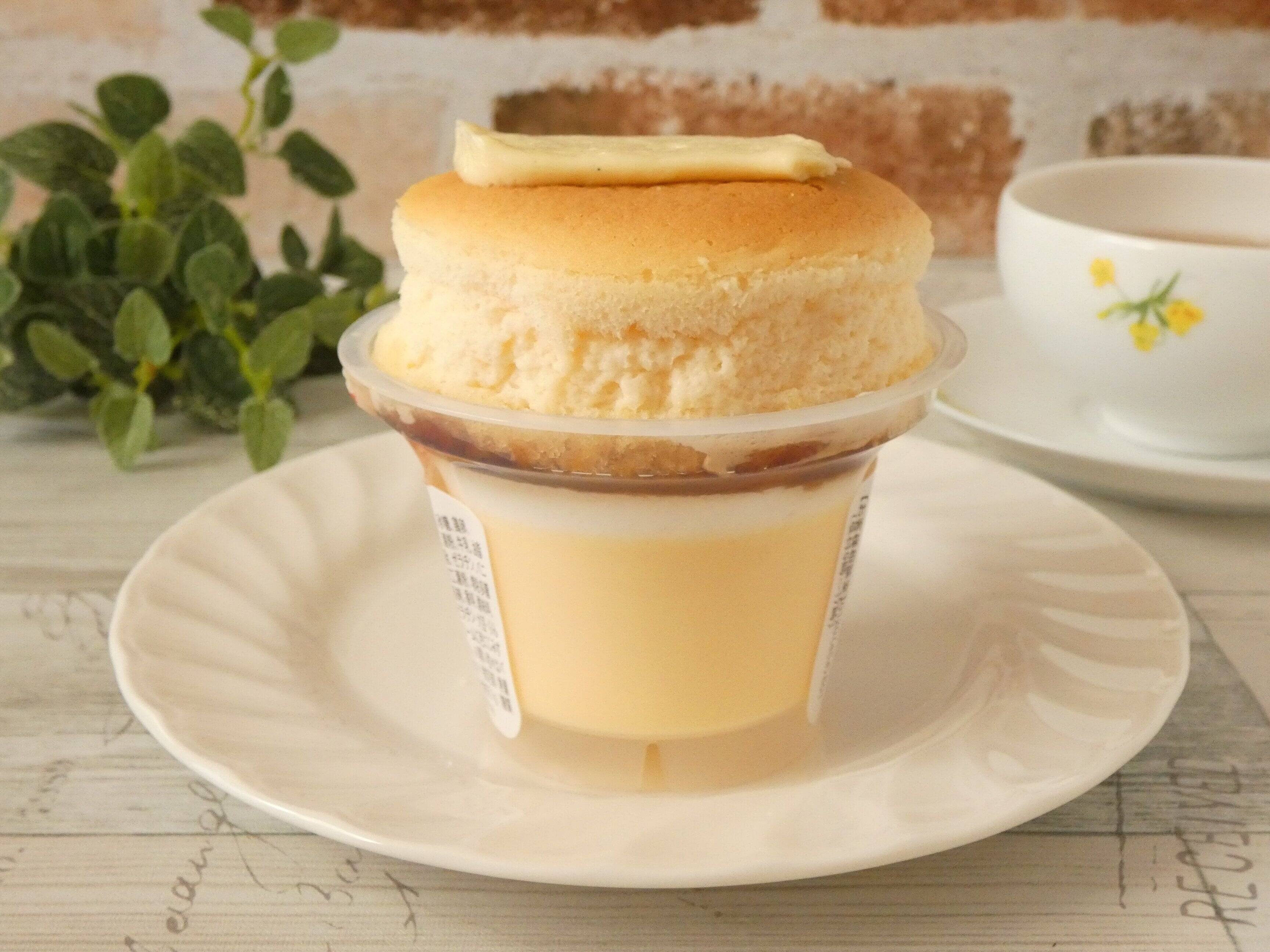 ファミリーマート新発売「ホットケーキなスフレ・プリン」は298円。