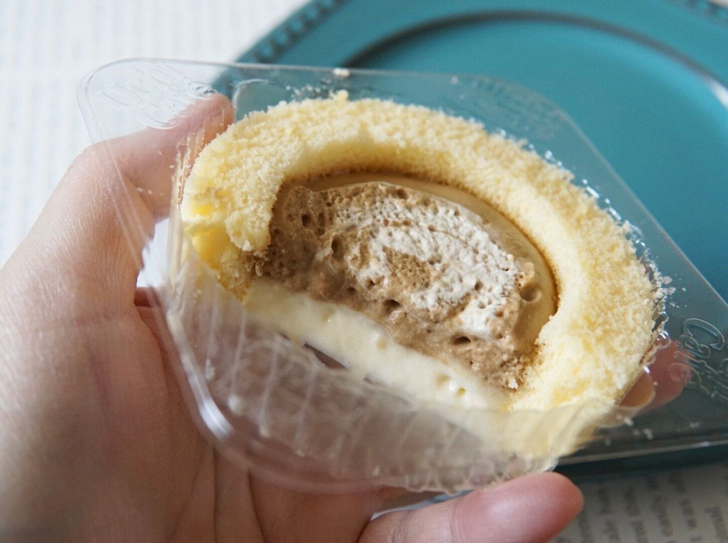 かすたーどやロール生地の甘さやミルク感が足されることで見事なカフェラテが完成しているという印象を受けました。上から見たミルククリームと珈琲が混ざっている感もお見事です。