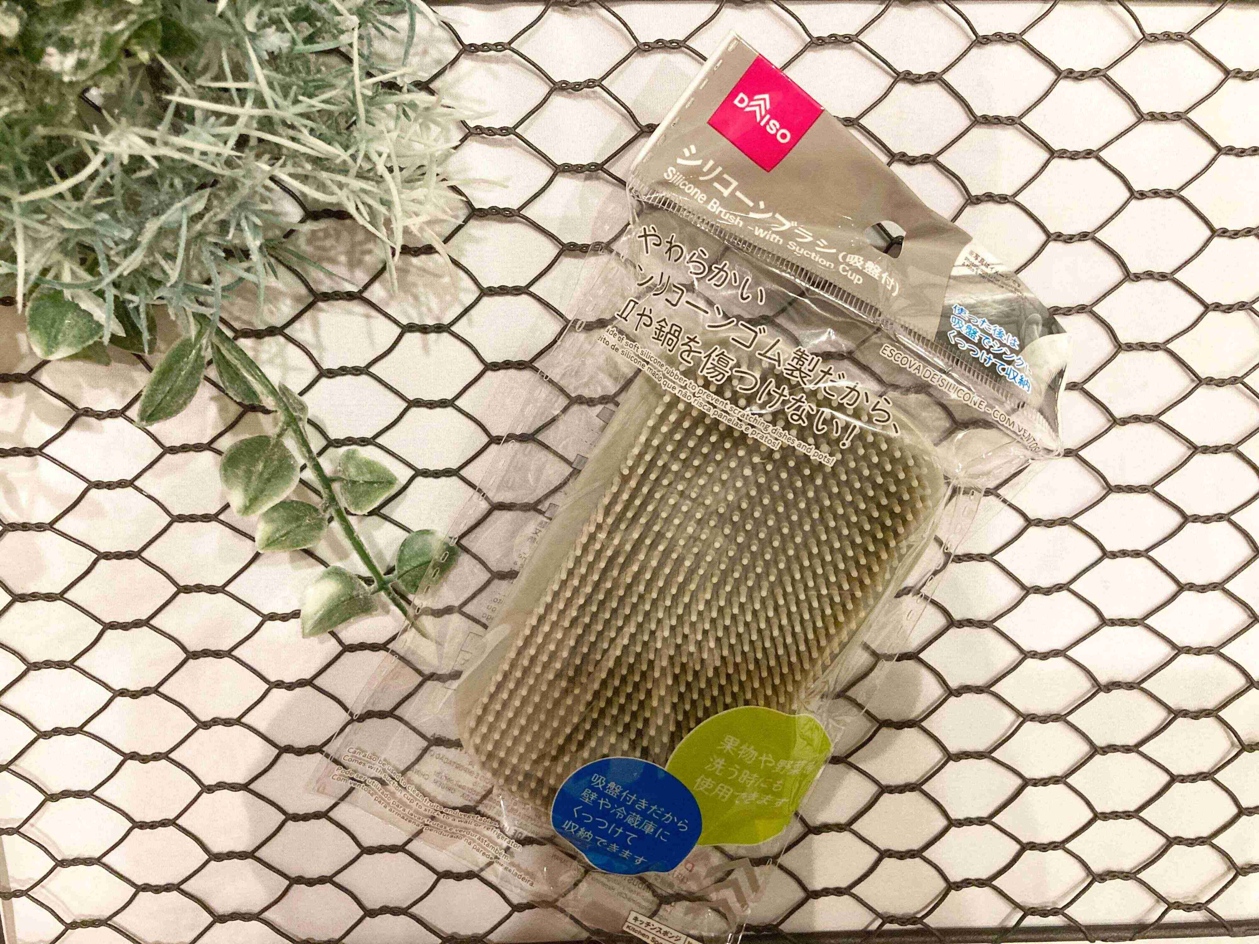 ダイソーで見つけた「シリコーンブラシ(吸盤付)」がお皿やお鍋を傷付けずに、頑固な汚れもスッキリ落とせて便利です!