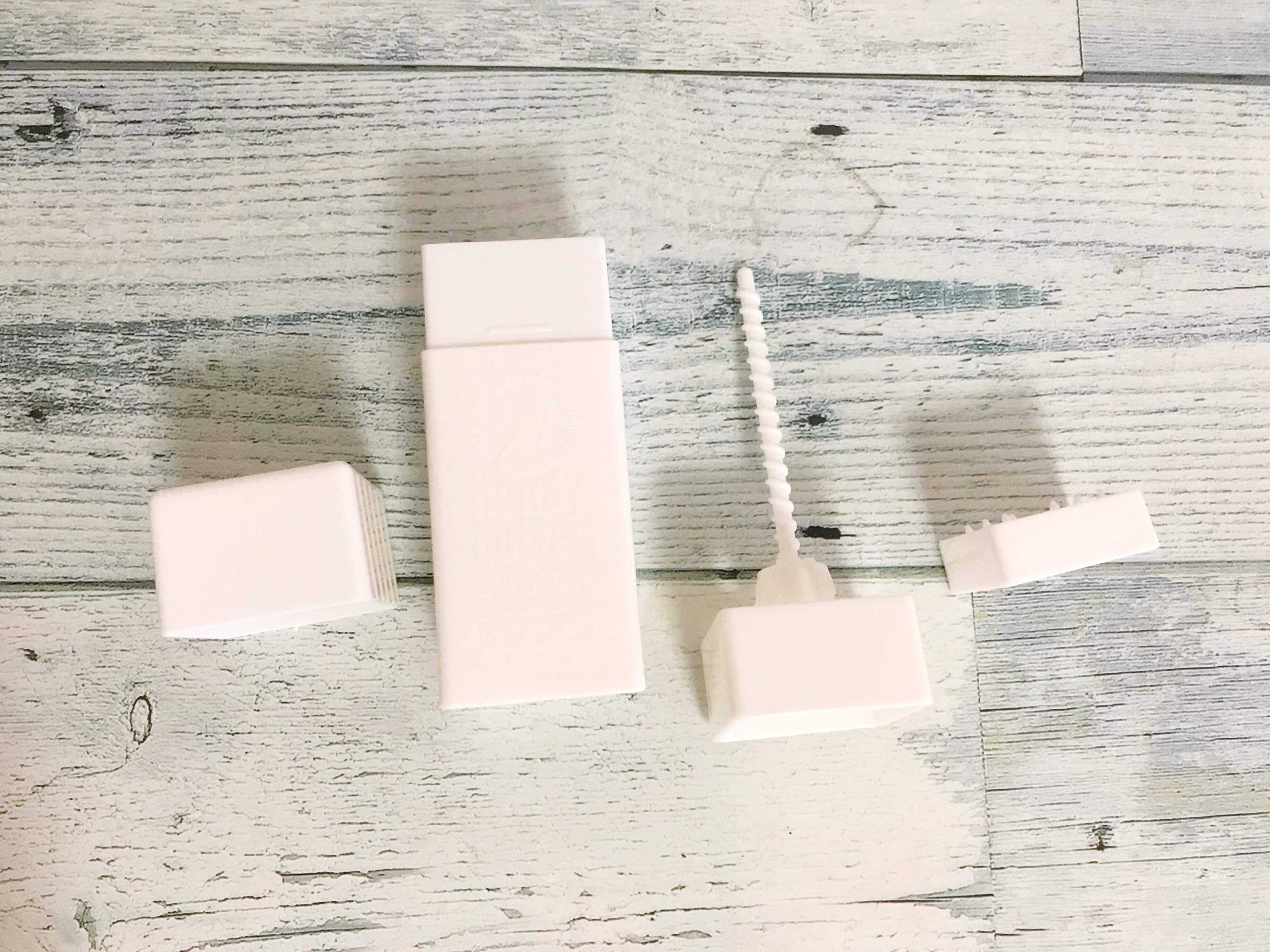 便利でも洗いにくいと使わなくなってしまいますが、このバタースティックは「ふた・回転台・ケース・回転軸」と分解できるのでお手入れがしやすいです。分解も器具を使ったりせずに簡単にすることが出来ます。