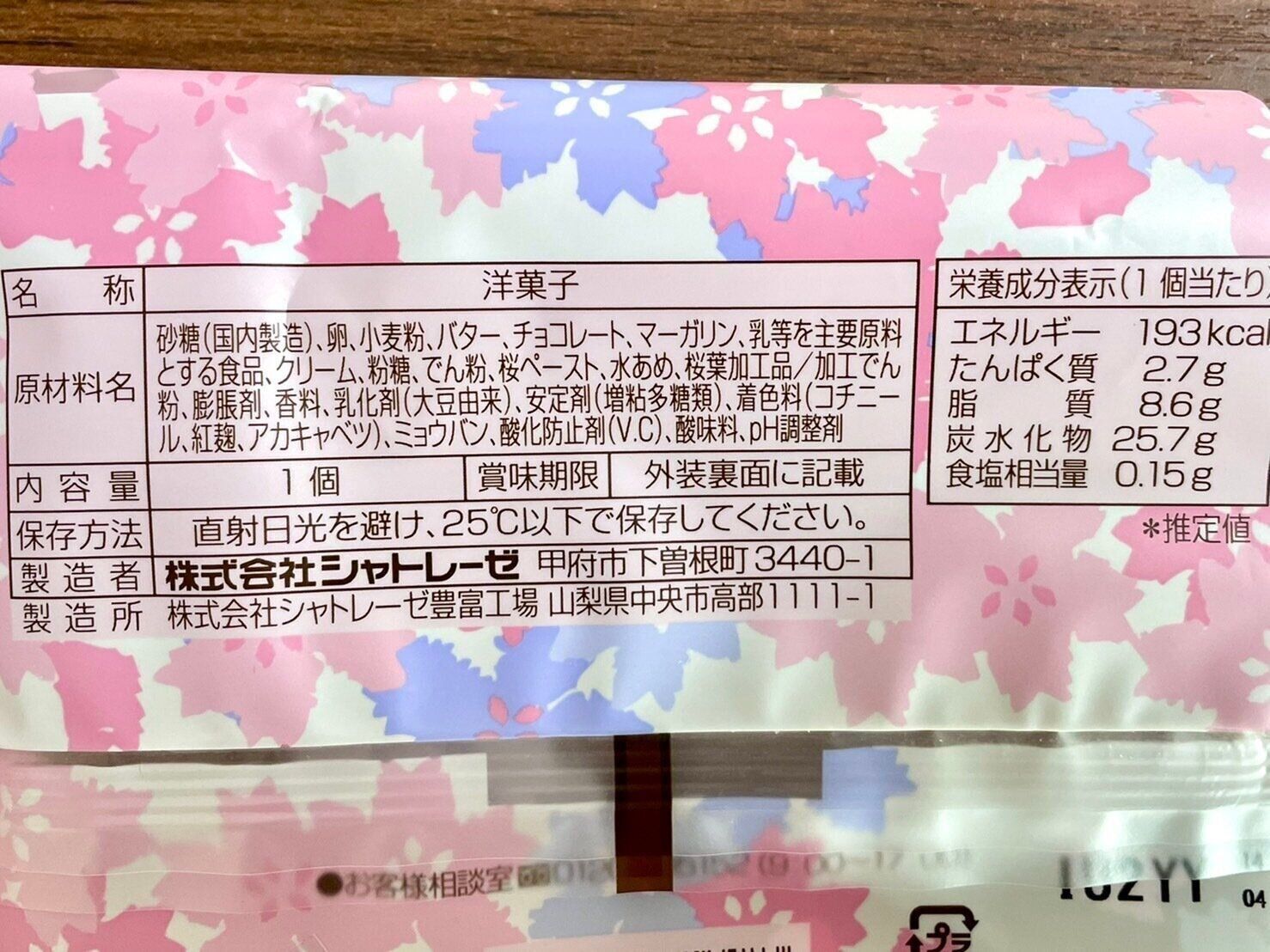 パッケージから春らしさをびしびしと感じるこちらは、シャトレーゼで大人気のブッセのさくら味バージョンです。