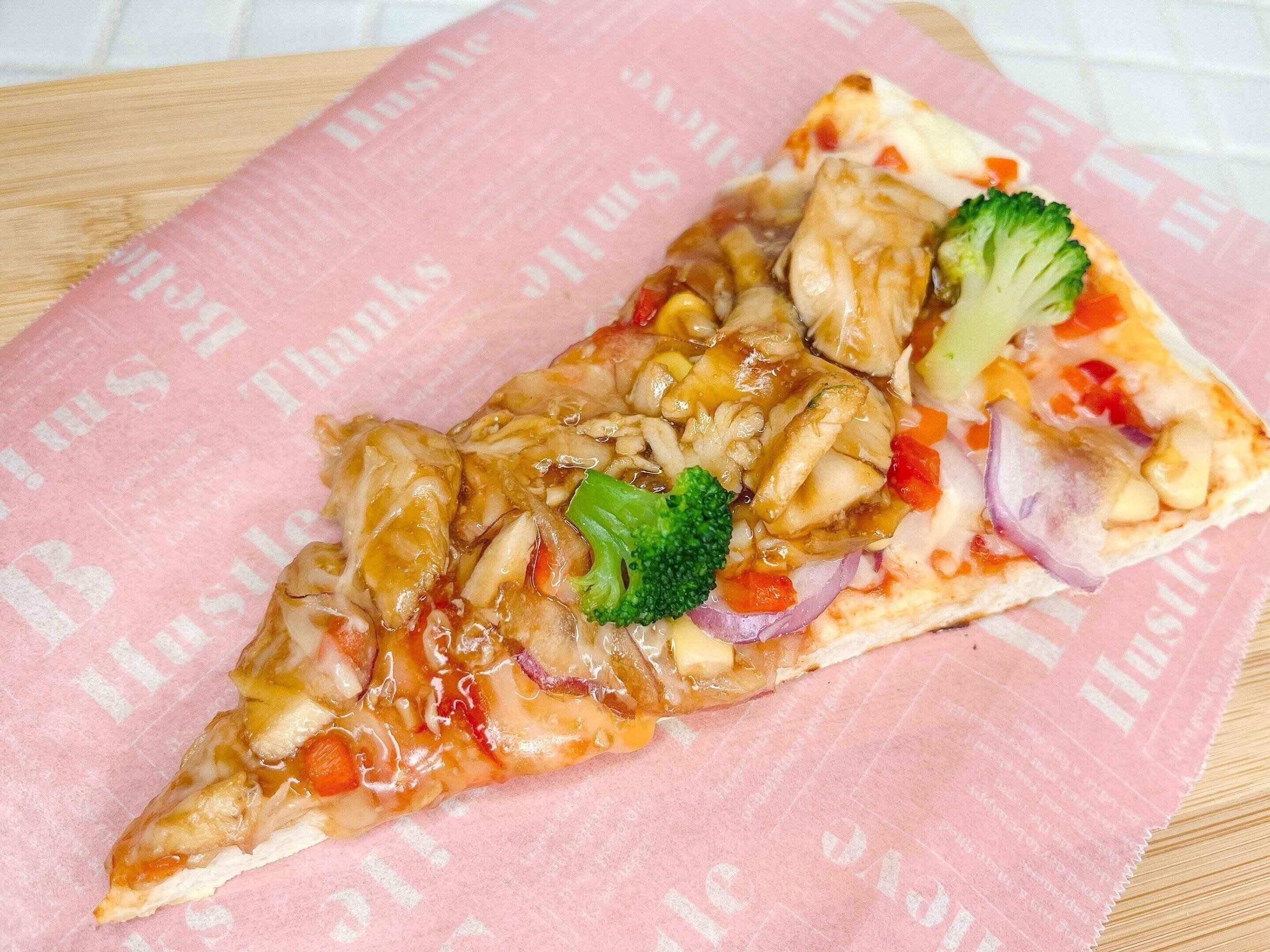 口に入れた瞬間照り焼きチキンの甘さが口の中に広がります。想像以上に甘めでみたらし団子のタレに似たような味がします。甘さだけではなく、トマトソースの酸味、玉ねぎやパプリカブロッコリーのフレッシュな野菜感など、全て合わさってとっても美味しいです!