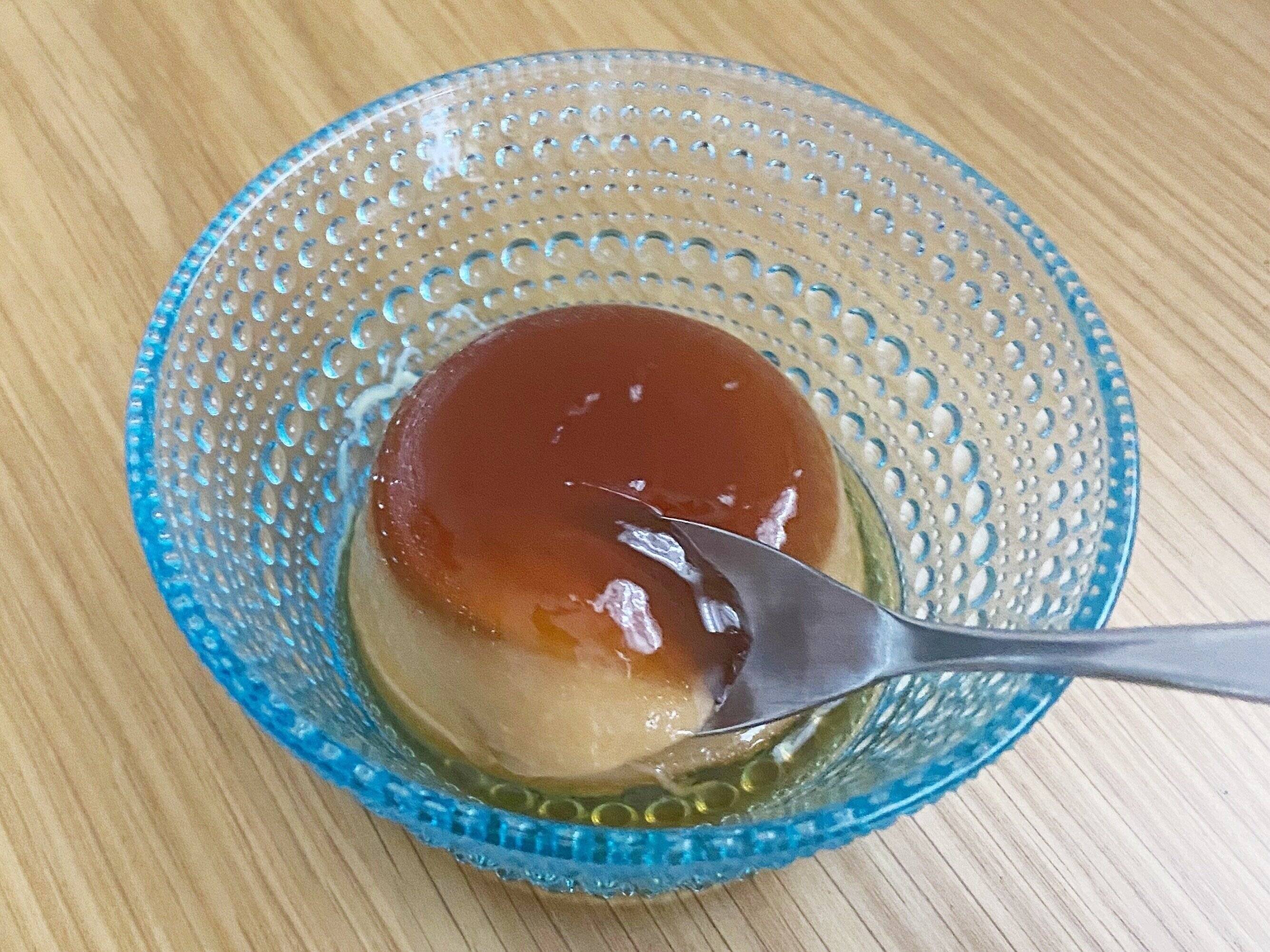 スプーンを入れるとスーっと反発なく入っていきます。プルプルではなく、なめらかタイプのプリンです。
