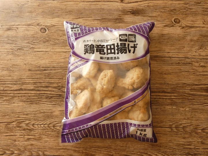 鶏竜田揚げは1kg入り537円。鶏むね肉を使った濃いめの味つけで、ボリュームたっぷり!おかずやおつまみにぴったりです。