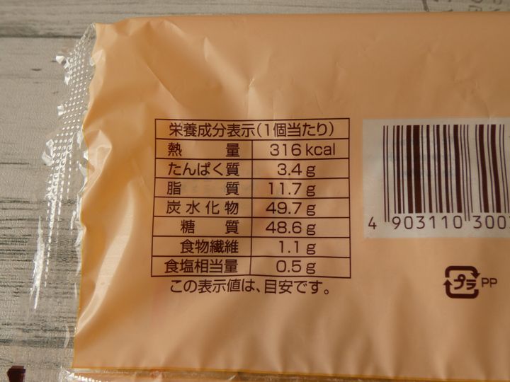栄養成分表示を見ると1個のエネルギーは316kcal。