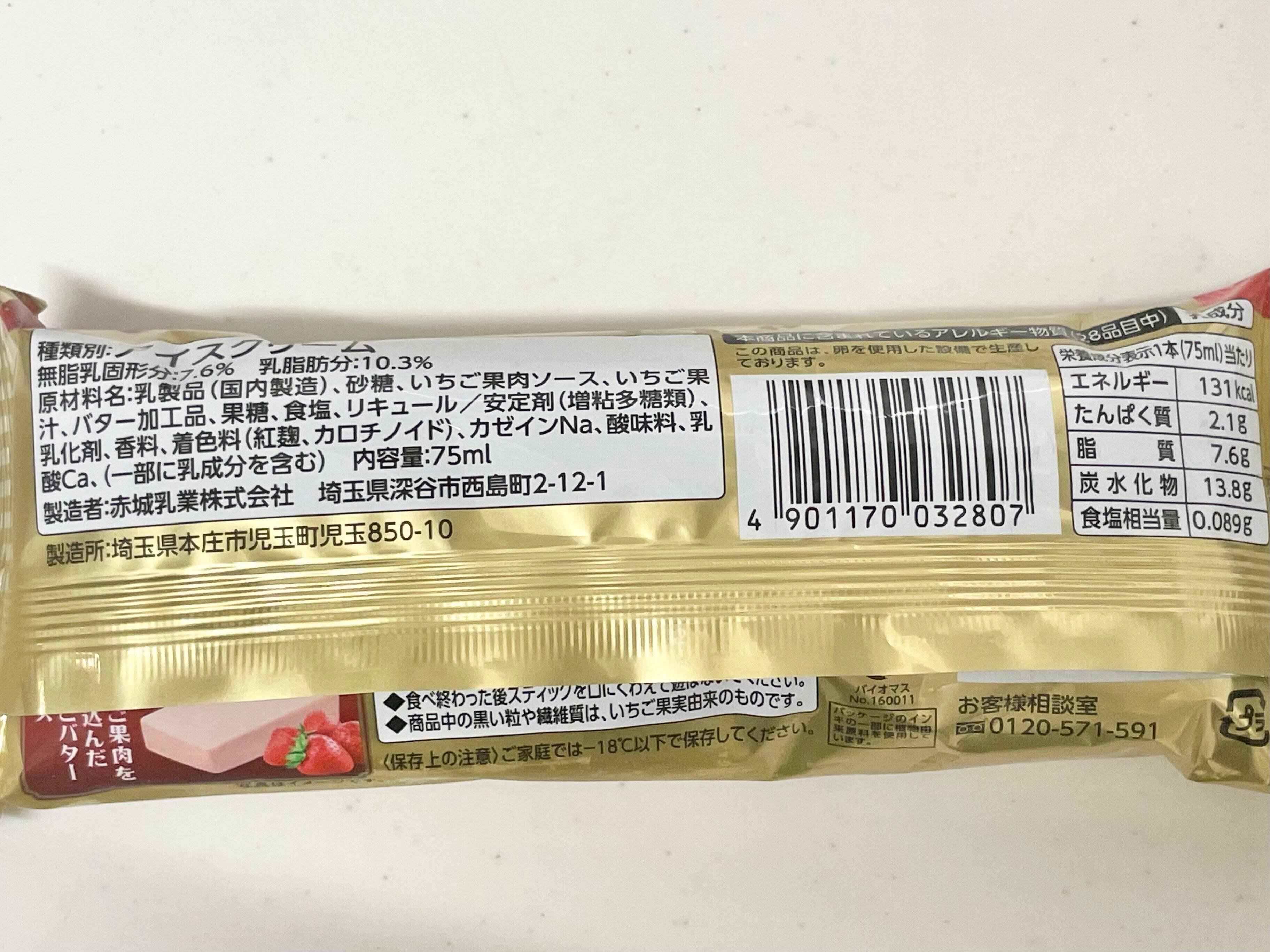 今回ご紹介するのは、2021年2月に発売されSNSで話題になった赤城乳業の「かじるバターアイス」の新フレーバー「かじるあまおう苺バターアイス」。いちごの王様と言われているあまおう苺と合わせています。数量限定の発売となっていて、3店舗目でゲットできました。早速ご紹介します。