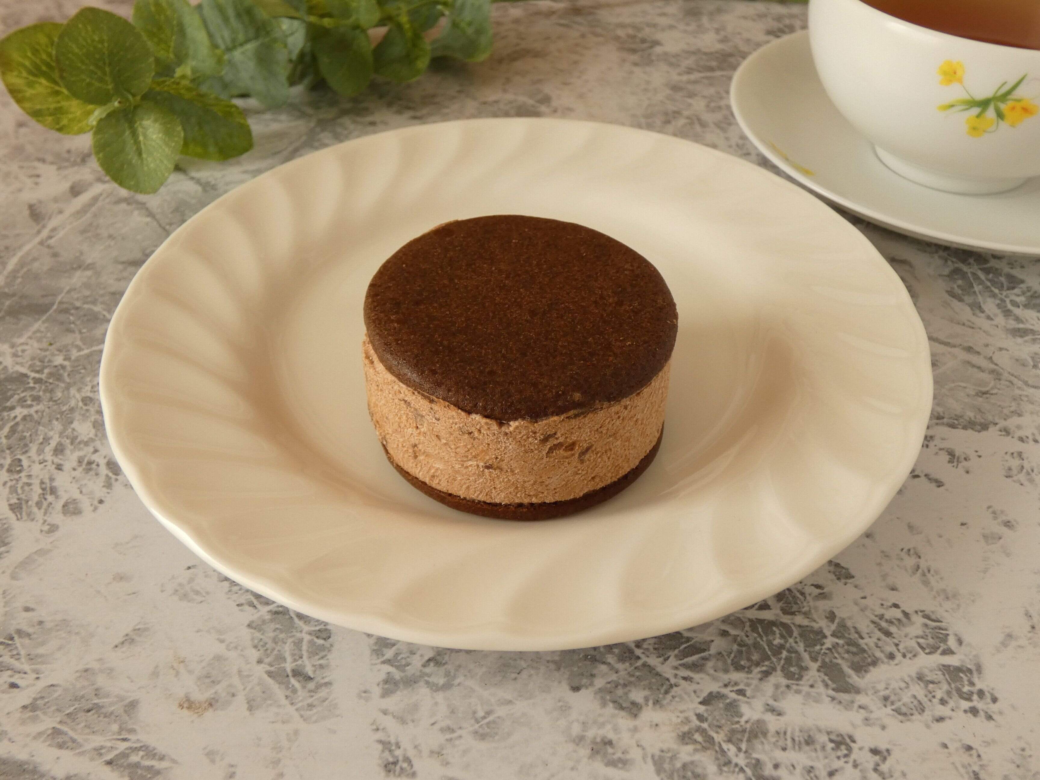 手のひらサイズのスイーツで、こんがりと焼いたビスケットにチョコチップ入りのショコラクリームがたっぷり入っています。