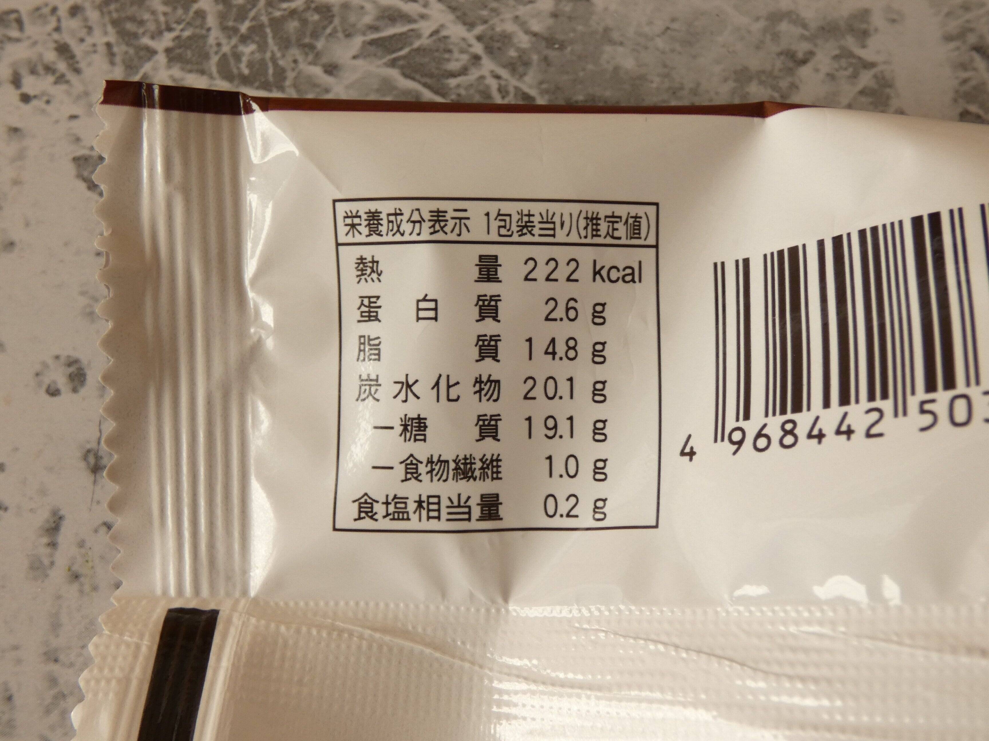 栄養成分表示を見ると1個のエネルギーは222kcal。
