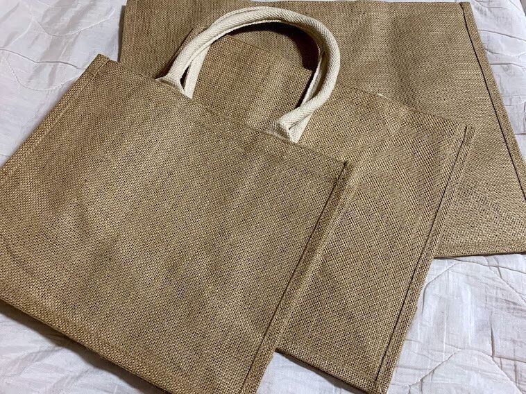 ジュート素材を使用したマイバッグ。しっかりしていて、お米などの重たいものもしっかり運べる優れものです。