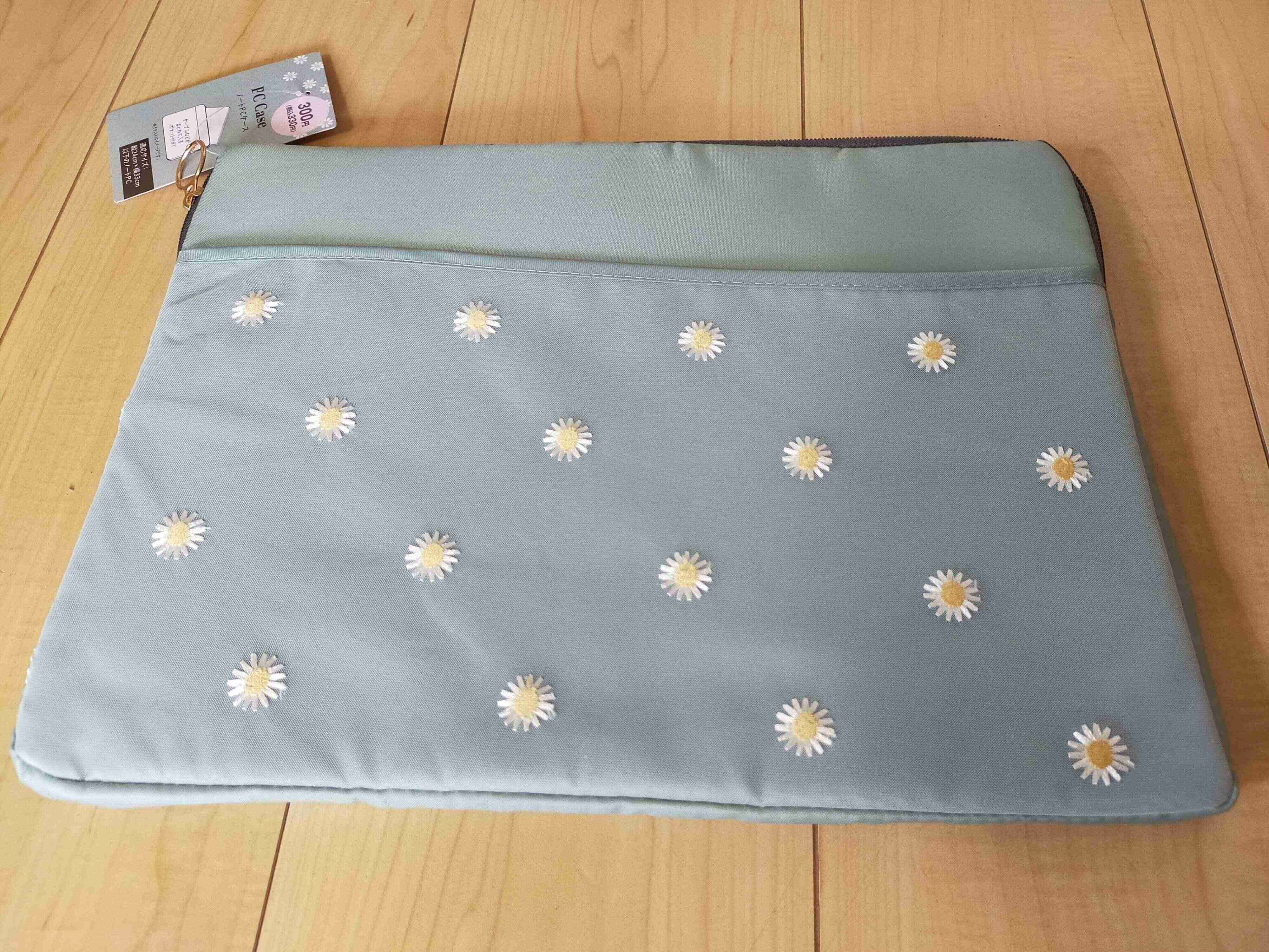 まずパッと明るいデザインに惹かれたこちらのPCケース。330円と侮るなかれ。生地はクッション性があり厚みもあります。