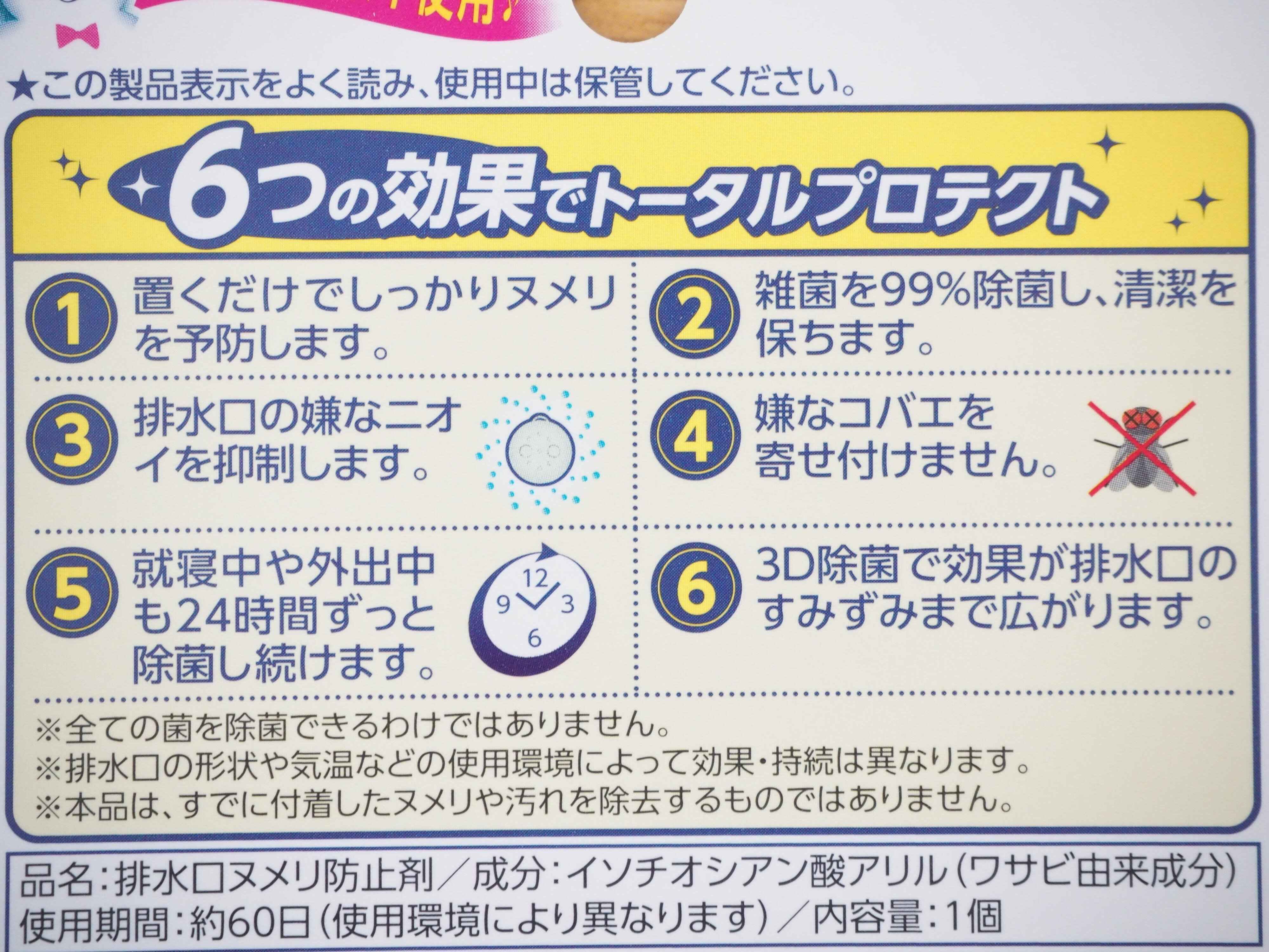あとは掃除をした排水口のかごの中に置くだけです。あくまでも予防のための商品なので、すでに付着したヌメリには効果がなく、掃除後に置くのがベストです。