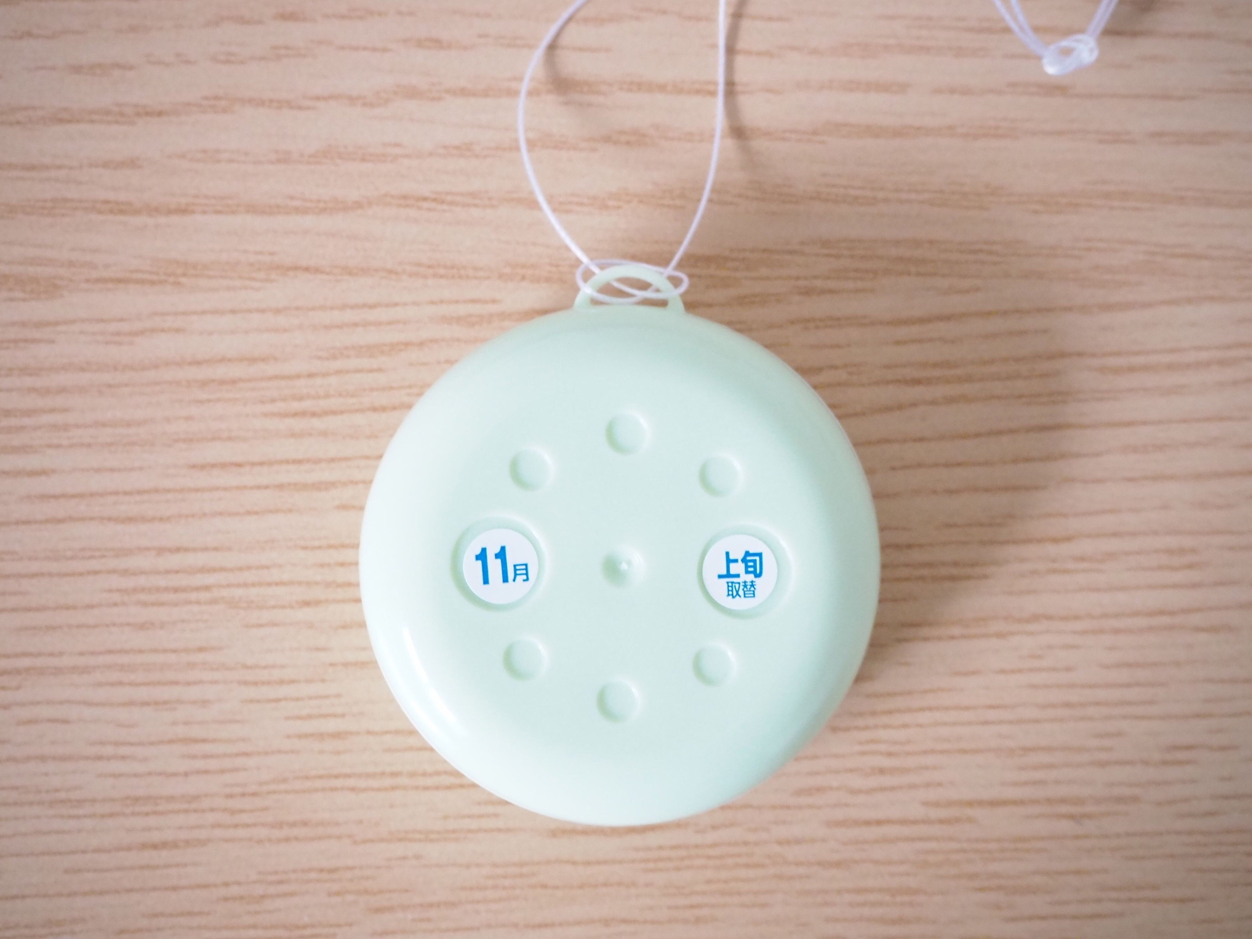 使用方法が簡単なのもこちらの製品の魅力です。まず開封して袋から取り出し、付属のお取り替え目安シールをタブレット型の本体に貼り付けます。
