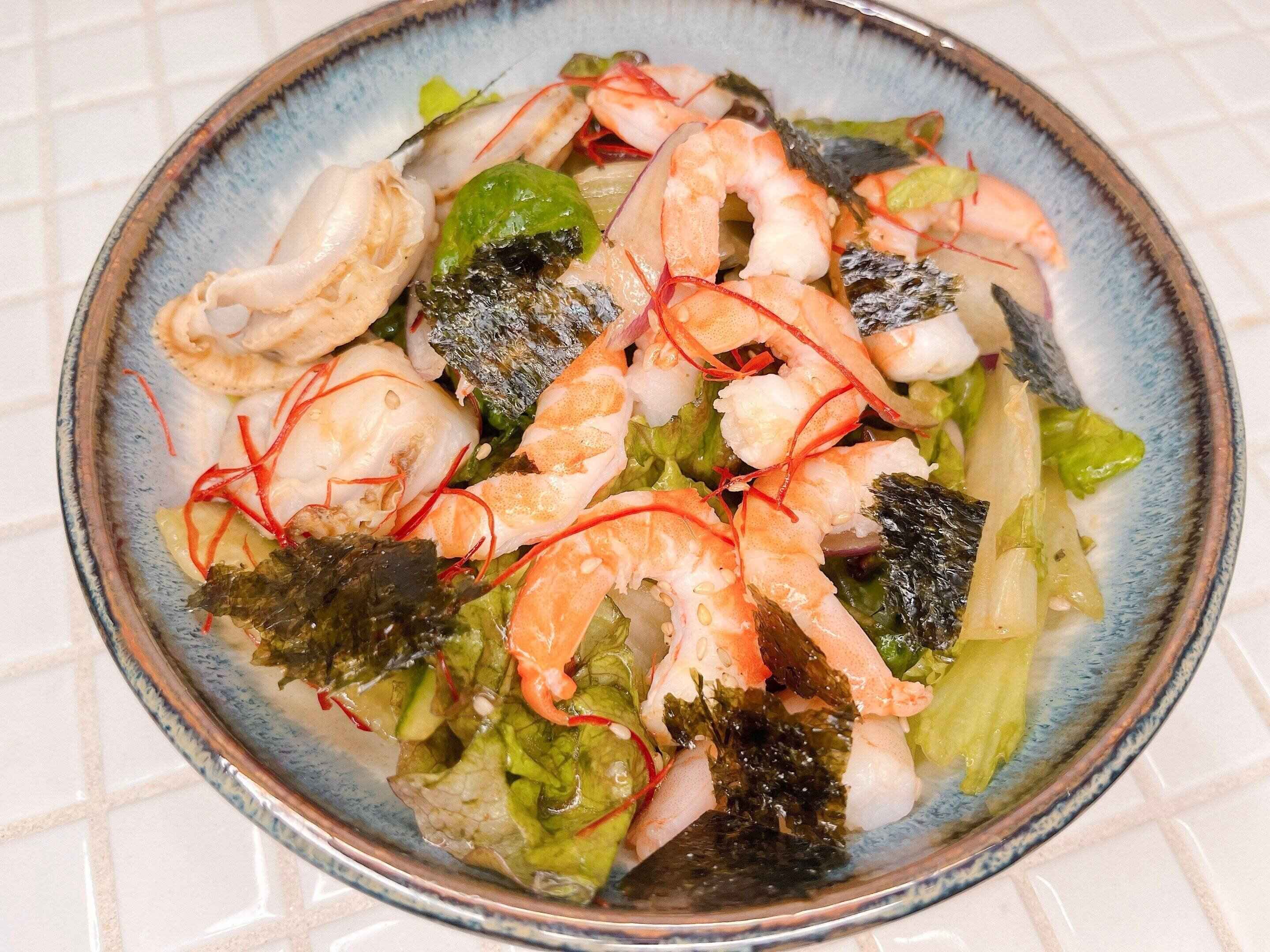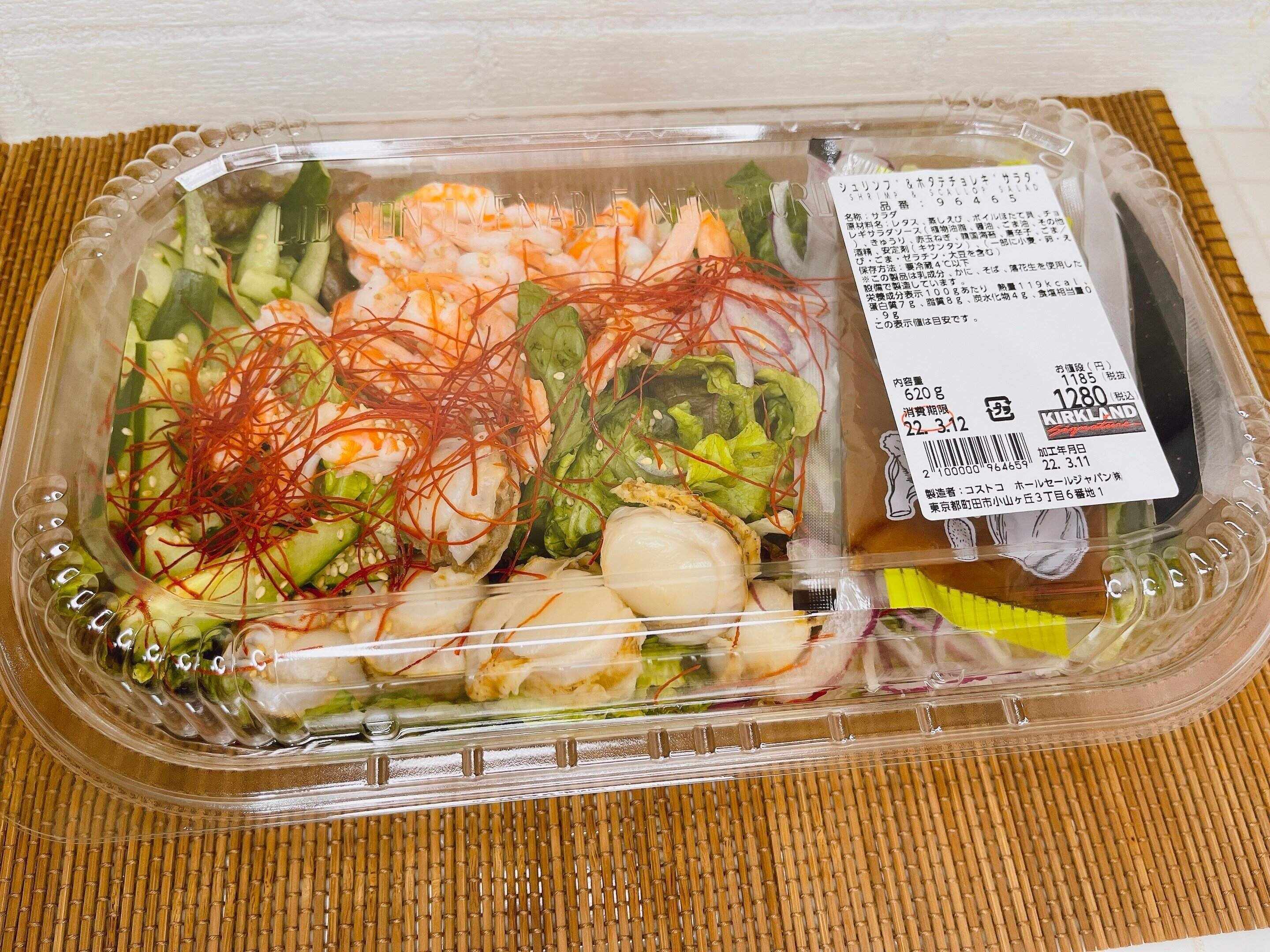わが家はサーモンの刺身がたっぷり入ったチョレギサラダがみんな大好きでしたが、もう1年半以上販売されておらず、現在はこちらの『シュリンプ&ホタテチョレギサラダ』が定番になっています。