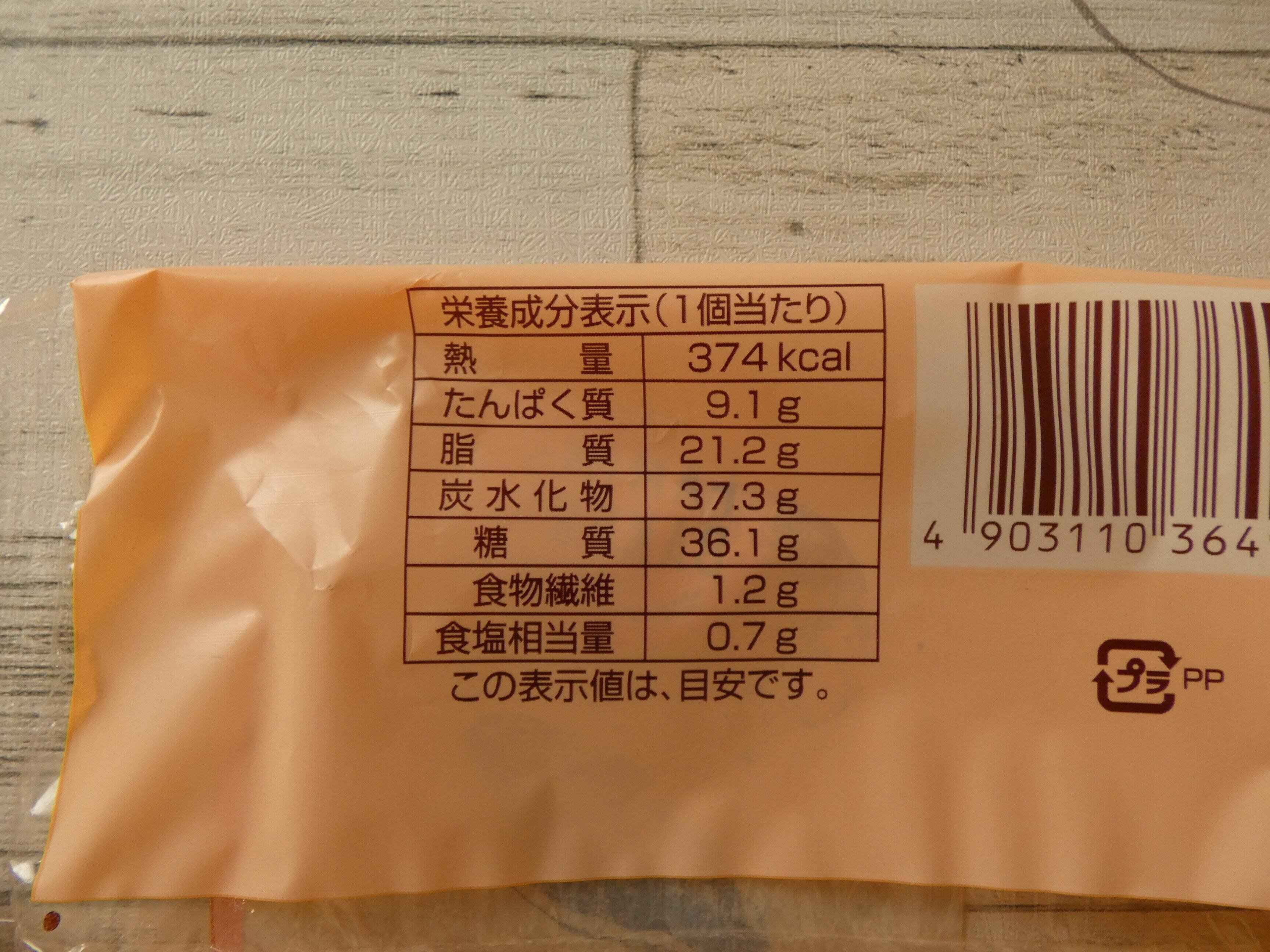 栄養成分表示を見ると1個のエネルギーは374kcal。