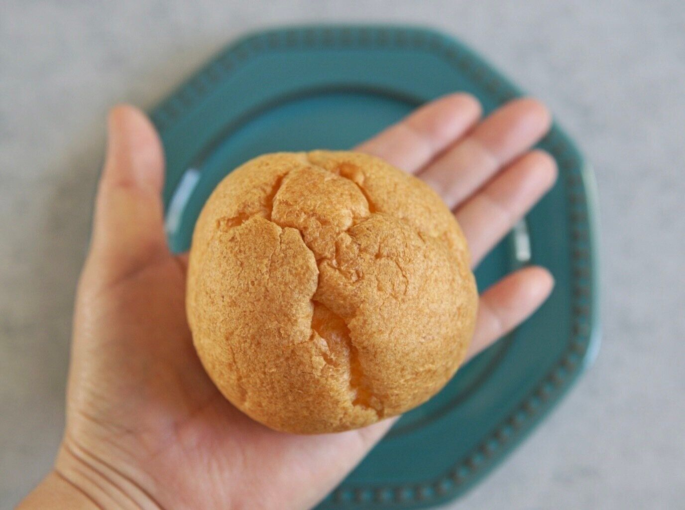 手のひらくらいの大きさで、シューは柔らかいけれど意外と厚みと存在感があります。このくらいなければカスタードの味やコクに負けてしまうんだろうなと感じます。そしてカスタードクリームの黄味が、まー強い。中に入っているバニラビーンズの粒がはっきりと見え、そして香ります。