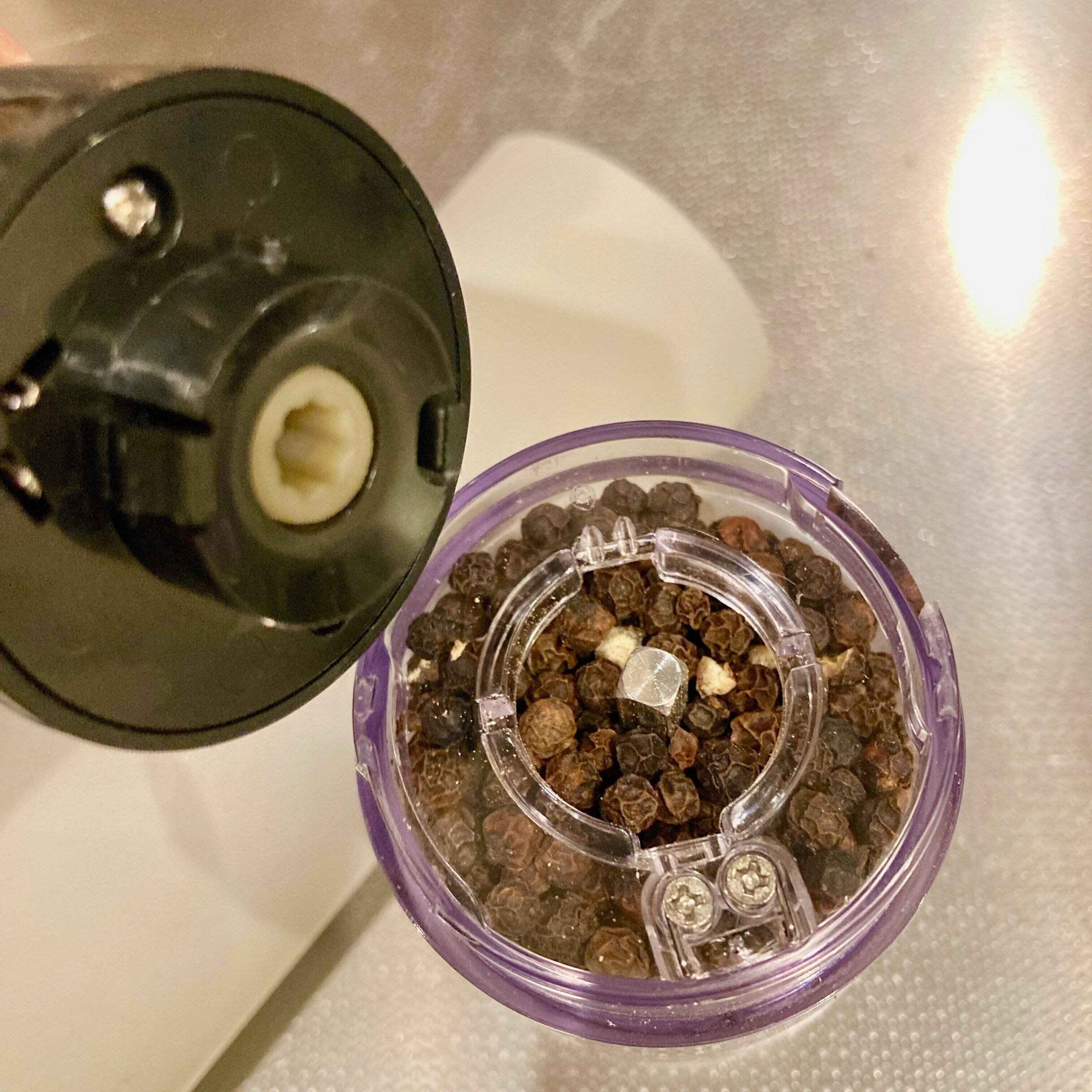 料理するときによく使う調味料のひとつに粗挽き胡椒があります。今まで手動のミルでその都度挽いて使っていたのですが、3COINSで電動ミルを買ってみたらそれはそれは便利だったので、私のように電動ミルを買おうかどうしようか考えているかたに向けて、紹介します!