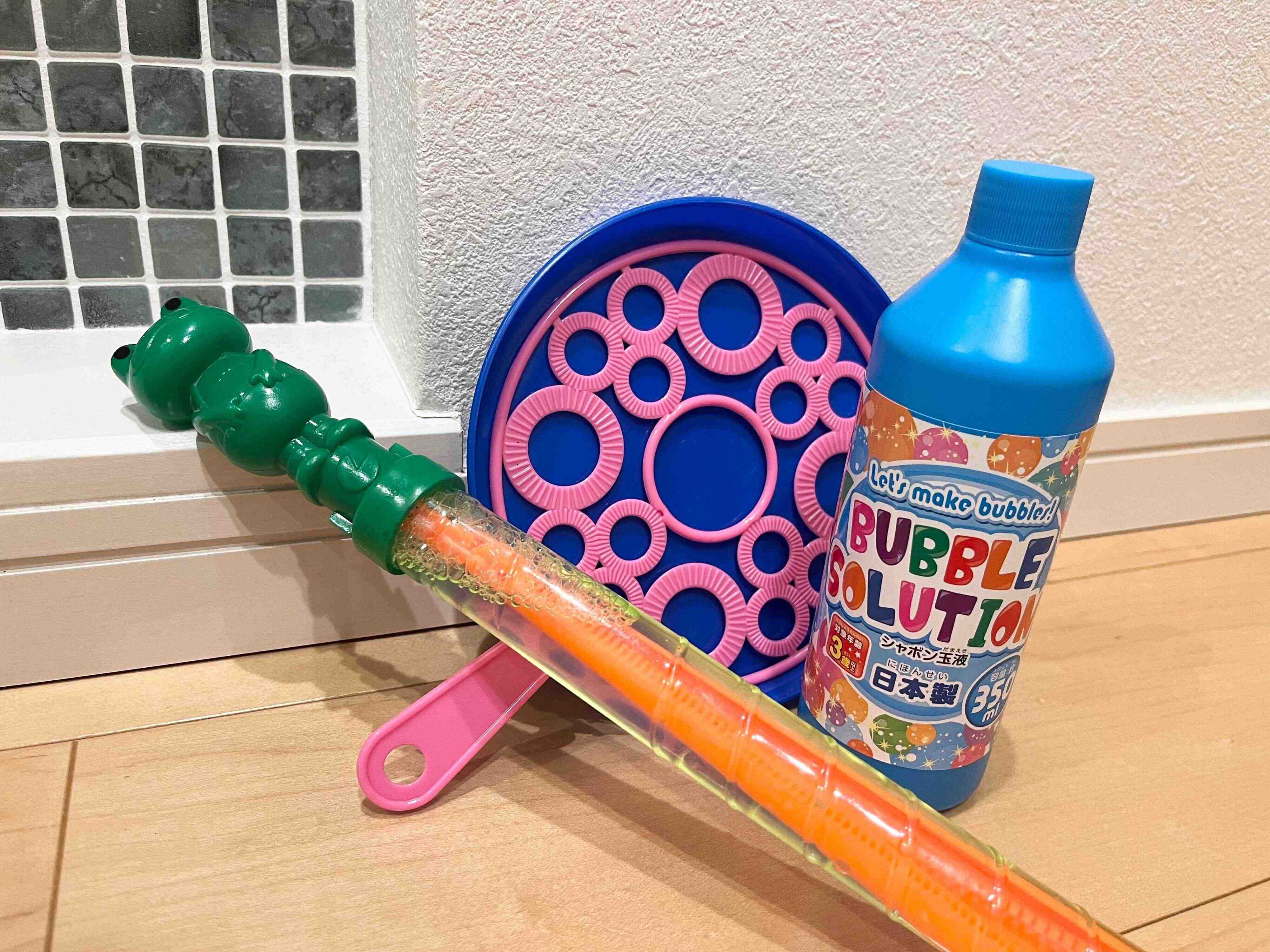 ご存じのかたも多いと思いますが、100均のシャボン玉はとっても優秀!口で吹くタイプから手で振って出すタイプまでさまざまな商品がありますよね。