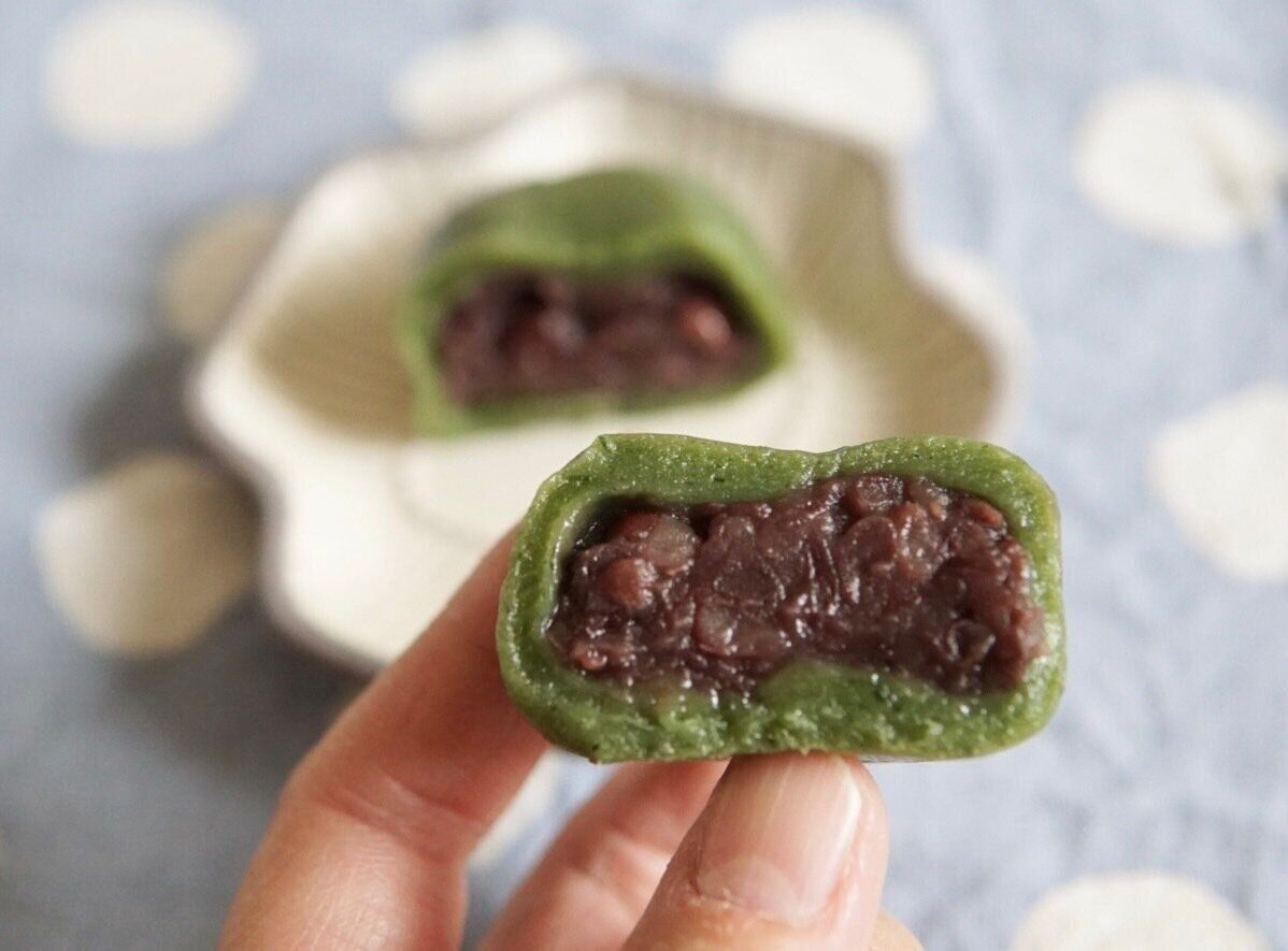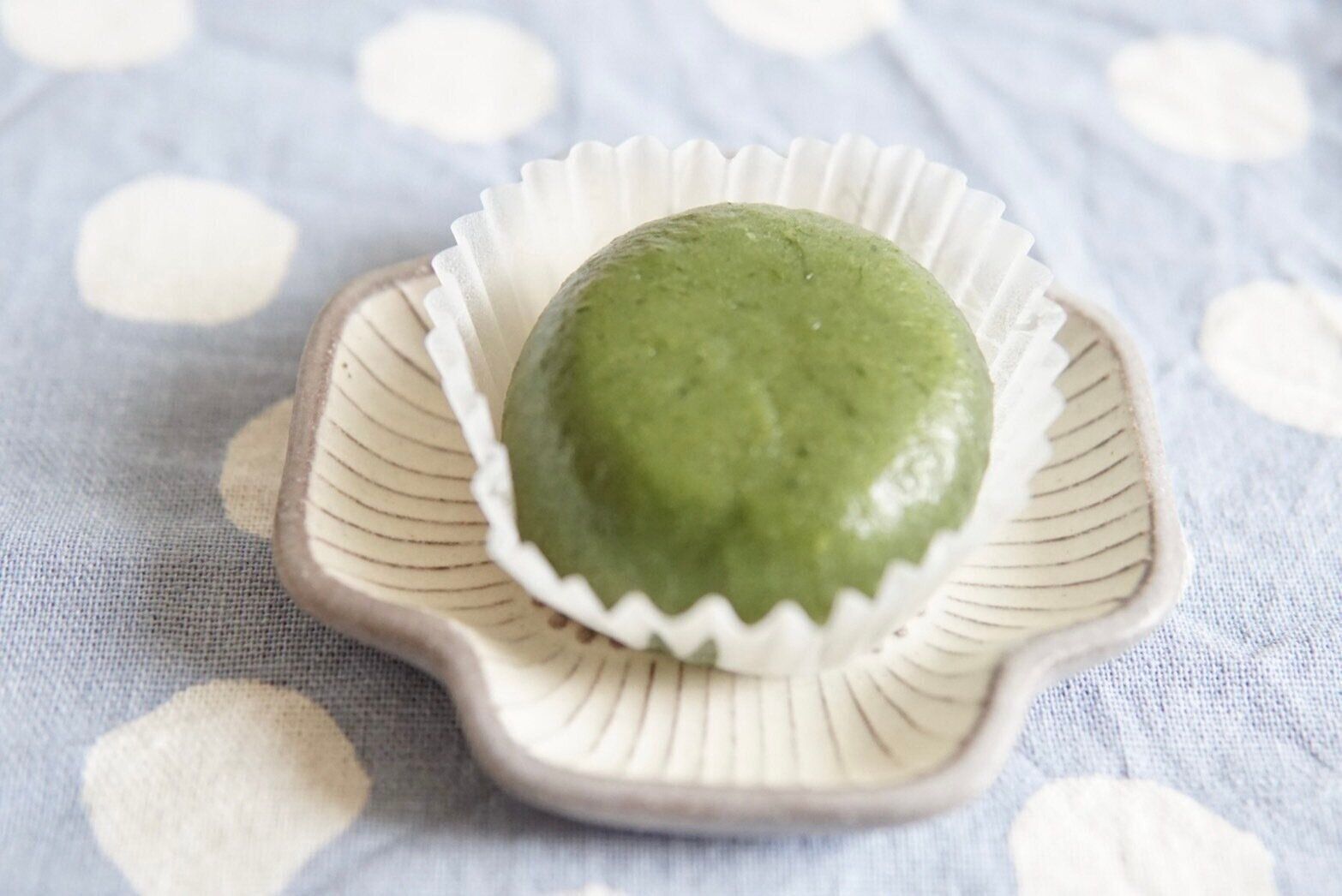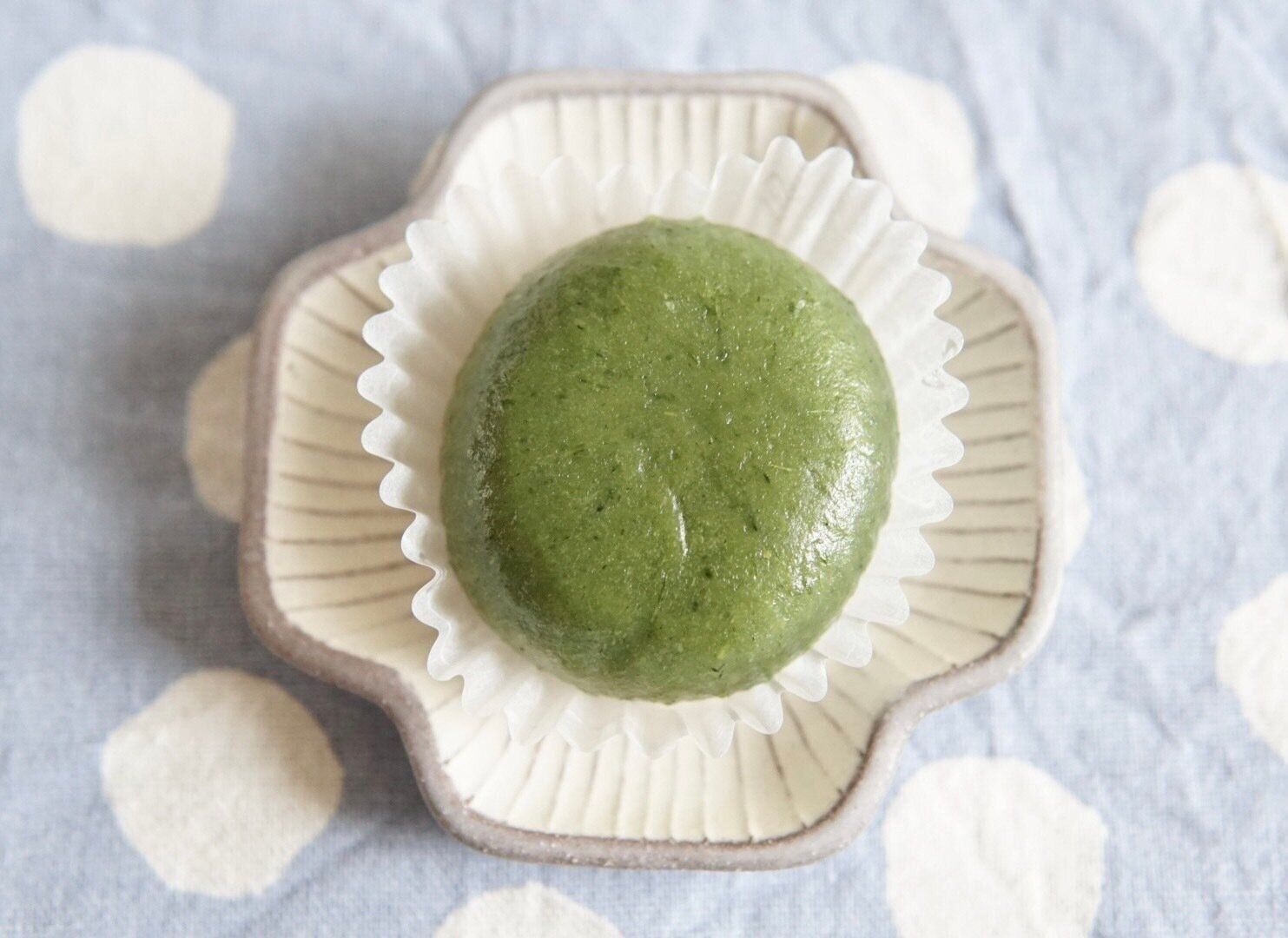 色が鮮やかでよもぎらしい粒が見えるのがまた美味しそう。少し厚めな生地のもちっと感と口に広がるよもぎの風味、中には甘すぎることのない控えめで上品な粒あんが。あんこが生地のよもぎの風味を引き立ててより美味しい草餅となっているなと感じました。