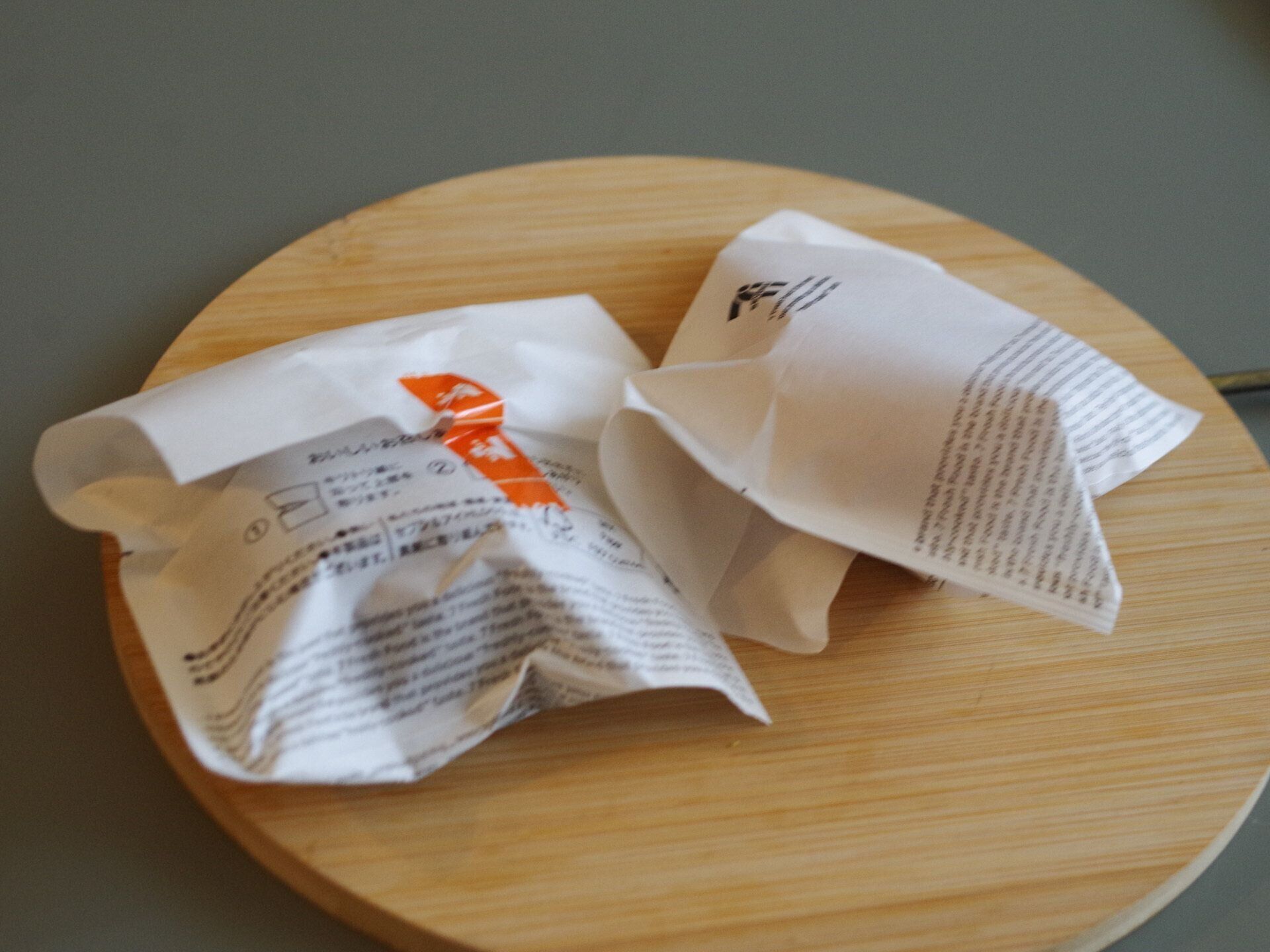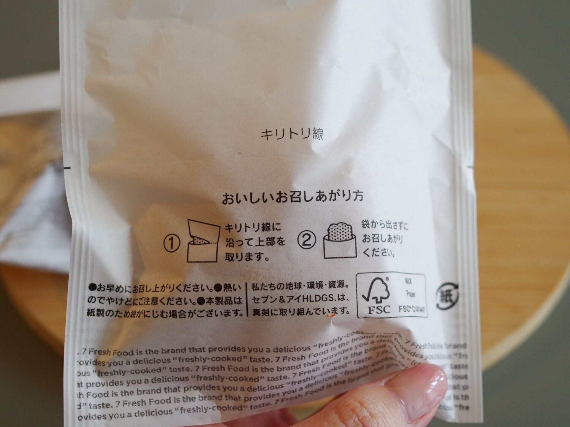 加熱後は、キリトリ線に沿って紙を切っていくと、袋から出さずに、食べきることができます。手が汚れる可能性がある揚げ物なので、こんな配慮はありがたいですね!