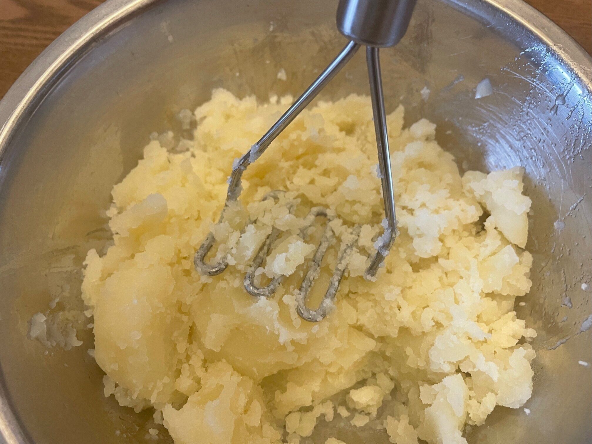 さっそくコロッケをつくるためのじゃがいもを潰してみました。