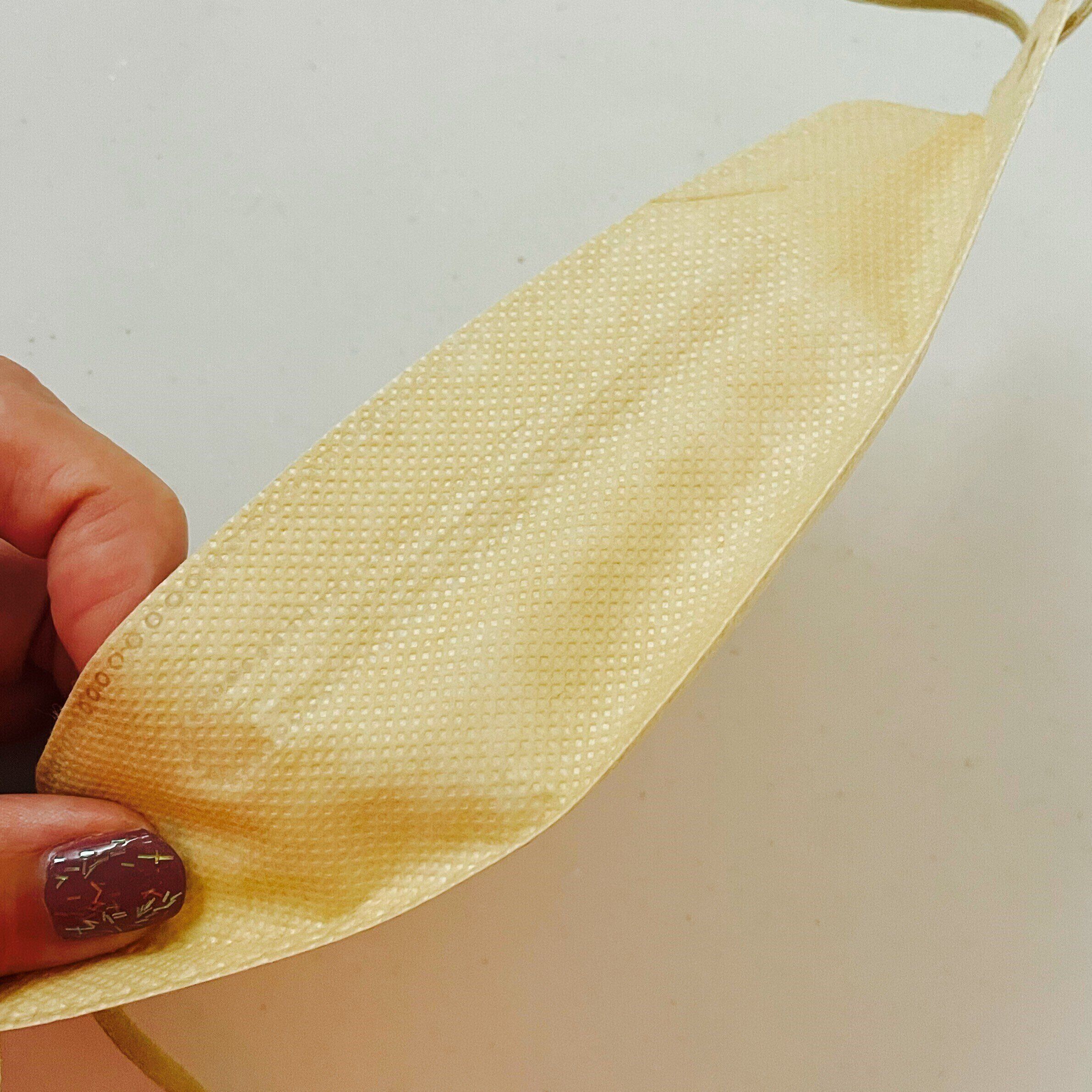 マスクをひっくり返すと不織布が畳まれた状態になっており広げて使うようです。