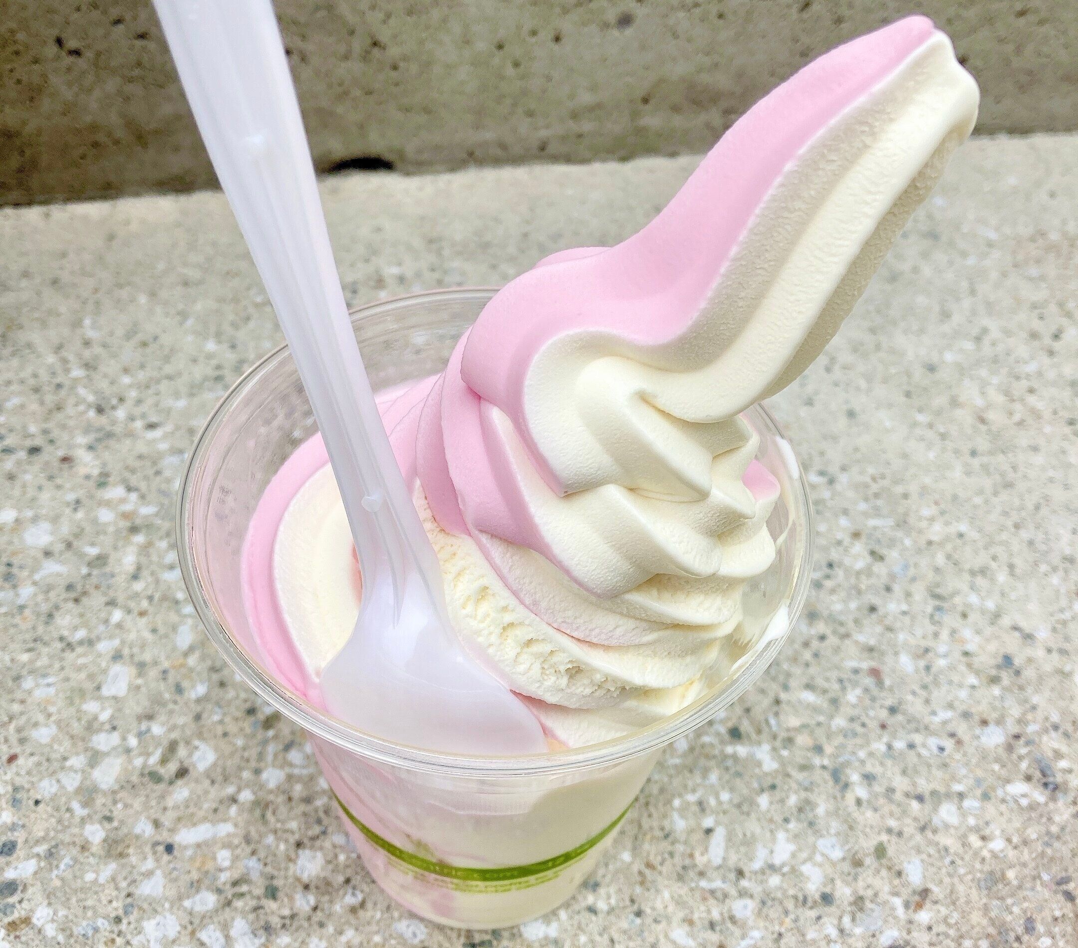 いちごソフト単体で食べると、甘さよりも酸味があったのでミックスで食べるのがおいしいと思いました。北海道ソフトは濃厚クリーミーですがいちごソフトの酸味で、最後まで飽きずに食べられましたよ。