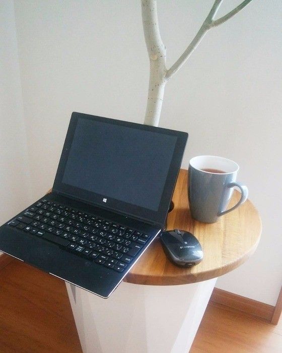 サンキュ!ブロガーあっちゃんさんは、赤ちゃんと観葉植物の共存のためにこのプランツテーブルというものを買いました。これをつければ、赤ちゃんに植物をいたずらされることもなく、こんなふうにパソコンやコーヒーをちょっと置くこともできます。