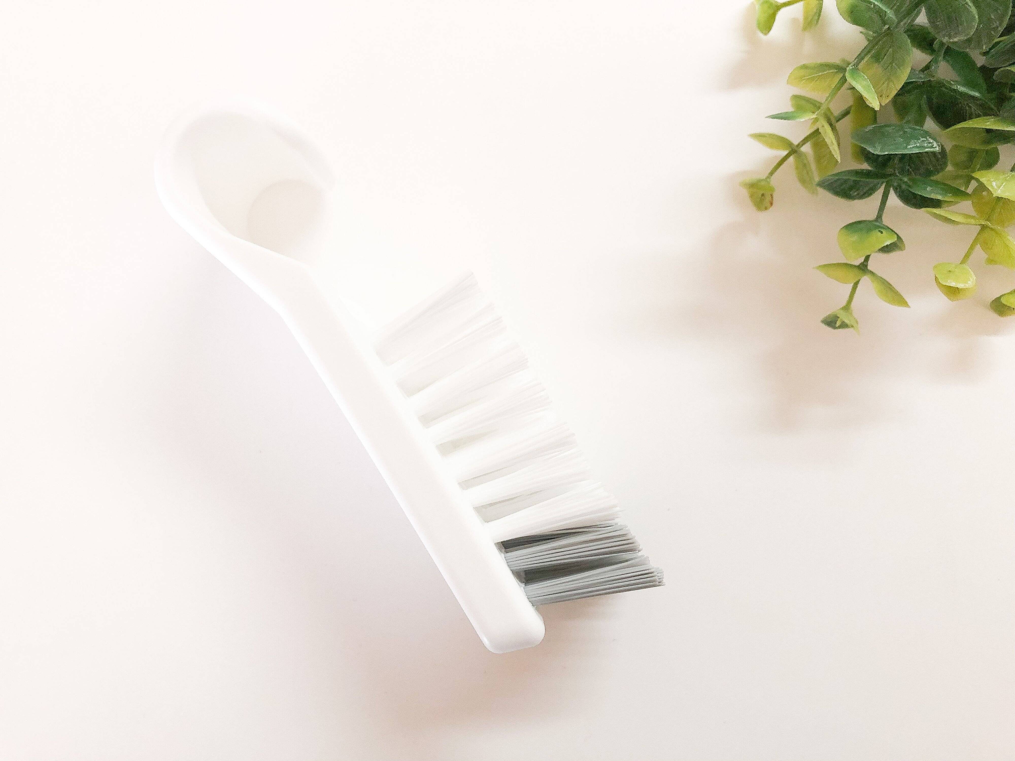 こちらのブラシは手にフィットして持ちやすく、ブラシの先端が少し突き出たデザインになっているので、床の角の部分などのお掃除がしやすくなっています。