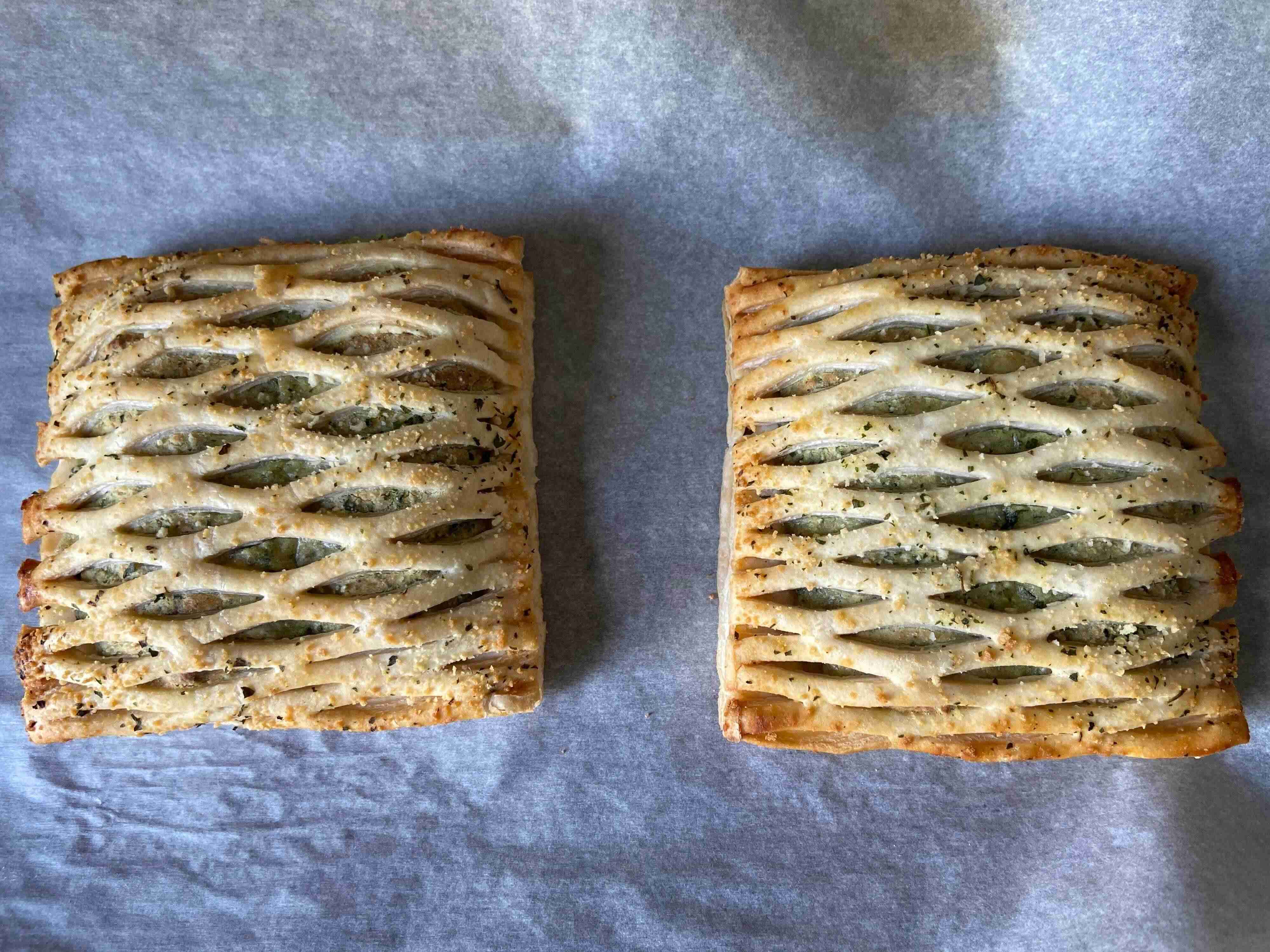さっそく食べてみると、焼きたてのパイ生地はサックサクで香ばしく、フィリングは濃厚なチーズのコクにほうれん草もしっかり感じられます。塩気もしっかりあり、おつまみにもぴったり!