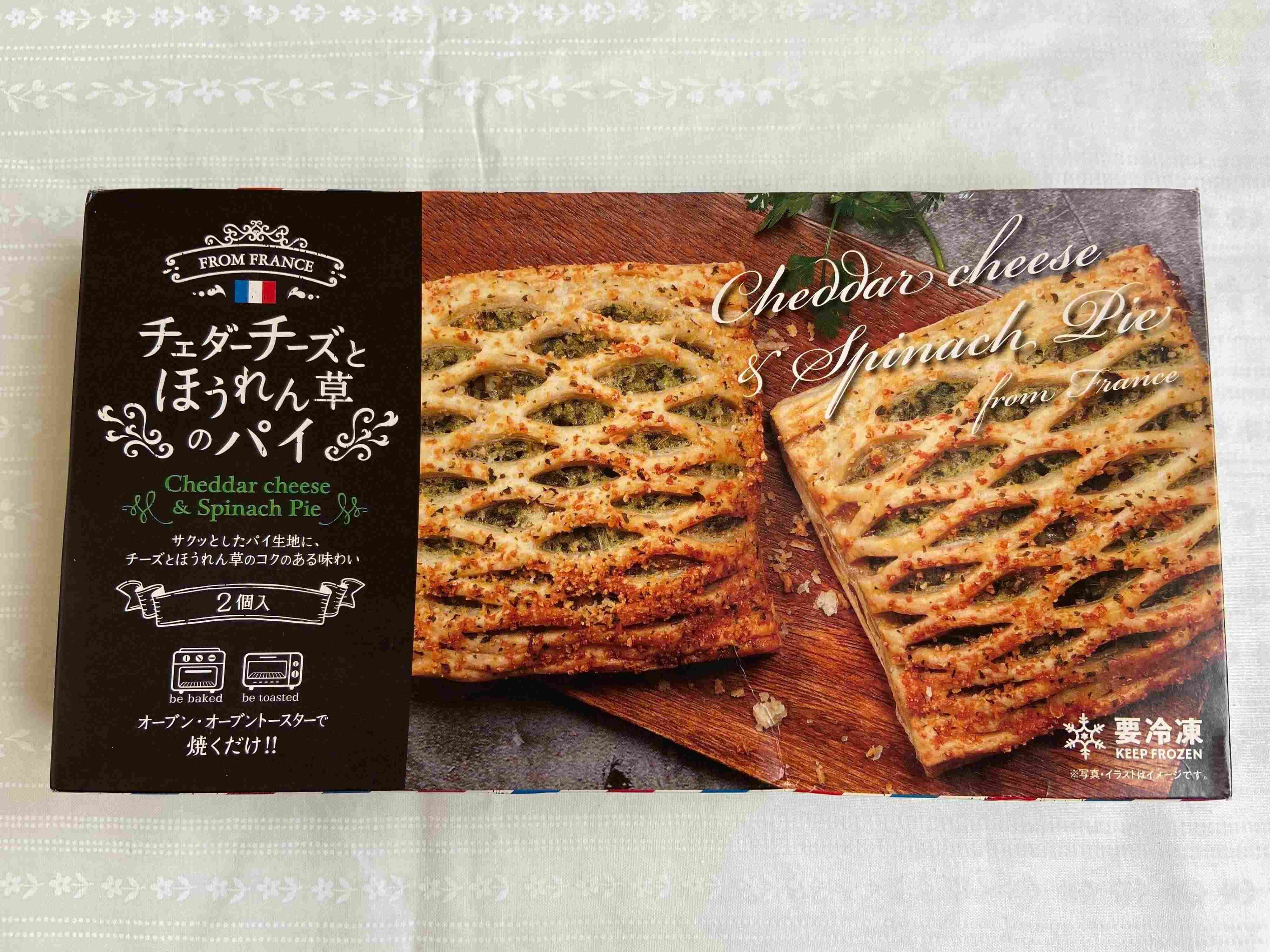 業務スーパーでとってもおしゃれで本格派な商品を発見!「チェダーチーズとほうれん草のパイ」(購入時:376円)はフランス直輸入品。パイ生地の中にはチェダーチーズとほうれん草の入ったコクのあるフィリングが入っているとのこと。