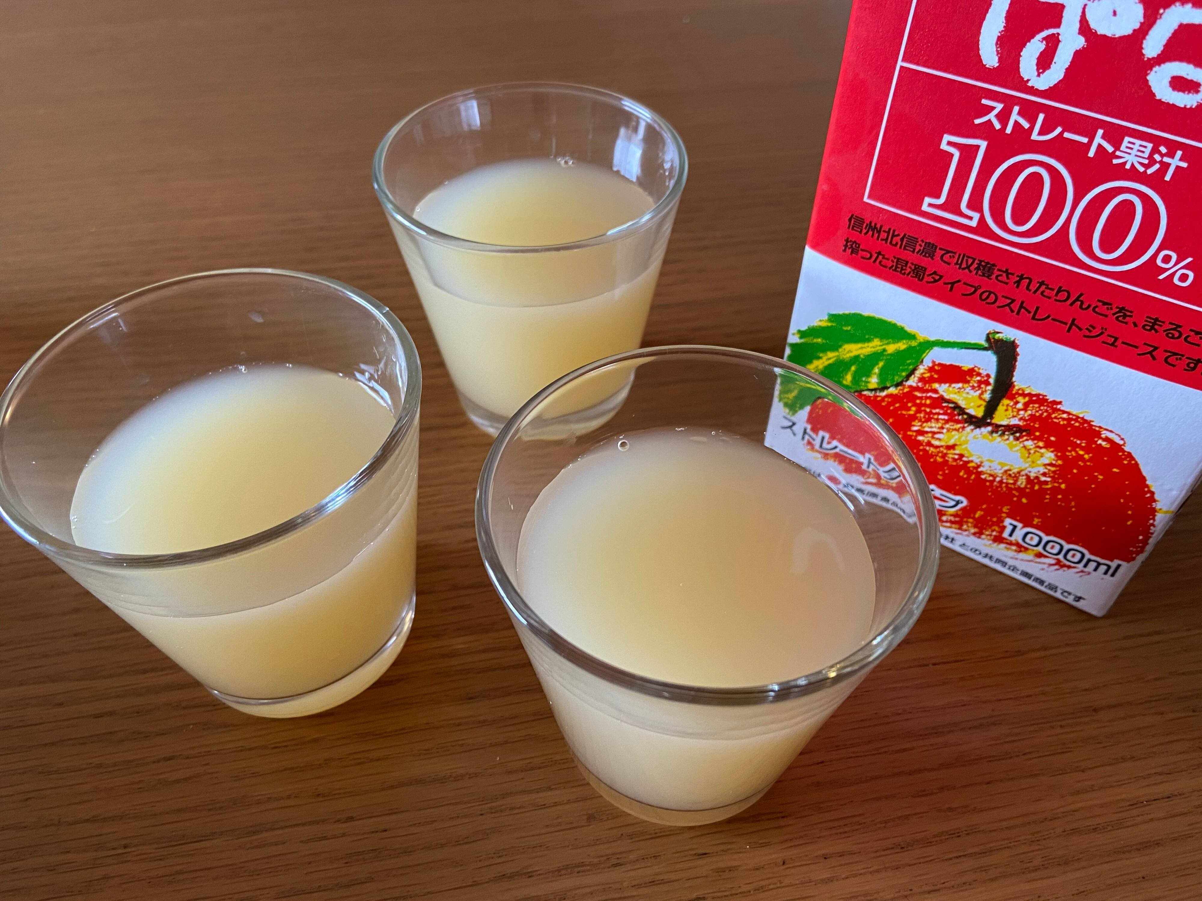 さっそく飲んでみると、味はもうりんごそのもの!とってもフレッシュでさわやかな、りんごの甘さと酸味がギュッと詰まった極上の味わい!