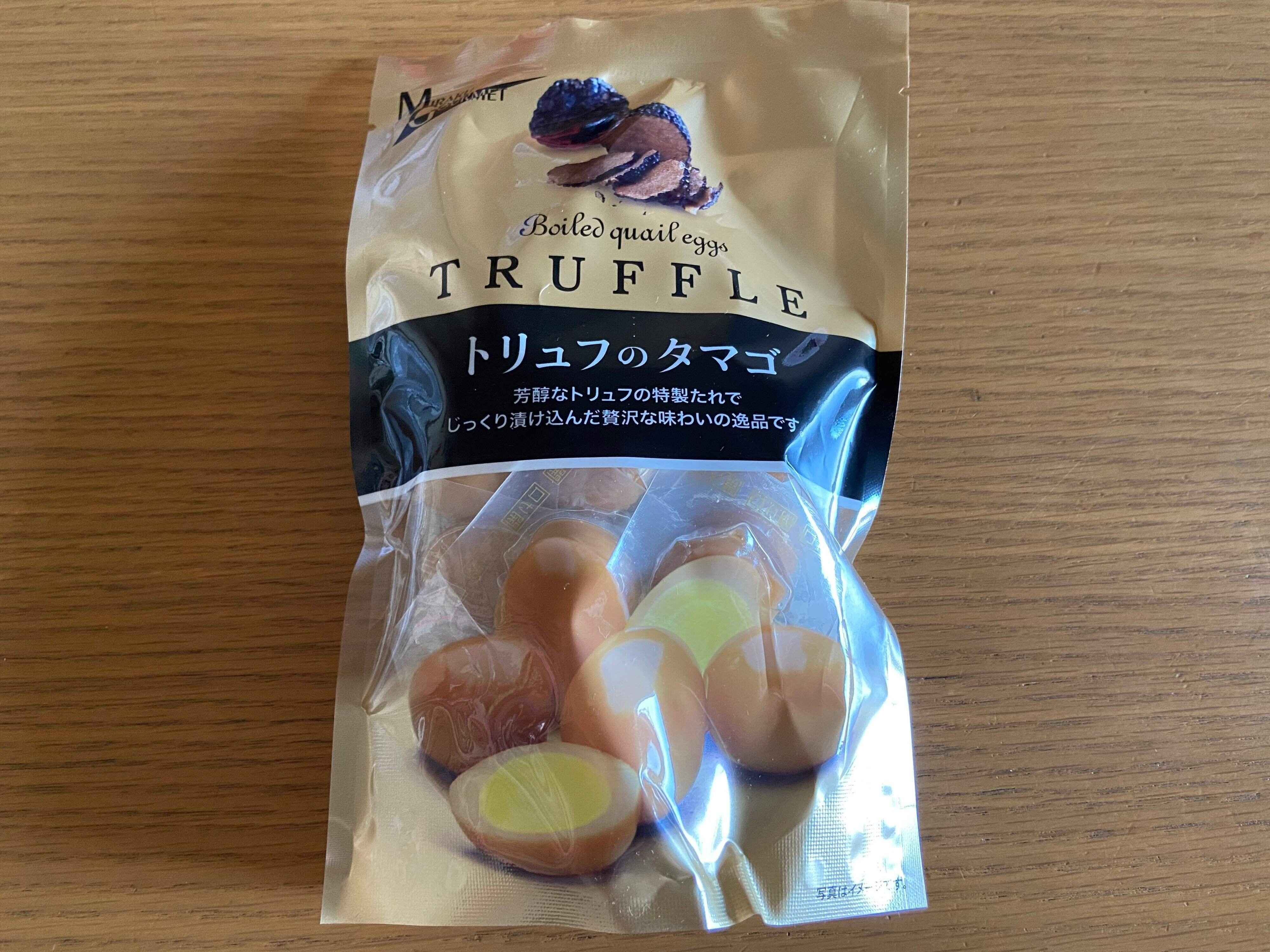 スーパーやコンビニのおつまみコーナーで燻製のうずらの卵はよく見かけますが、トリュフ味のうずらの卵は初めて見かけたので思わず購入してみました。