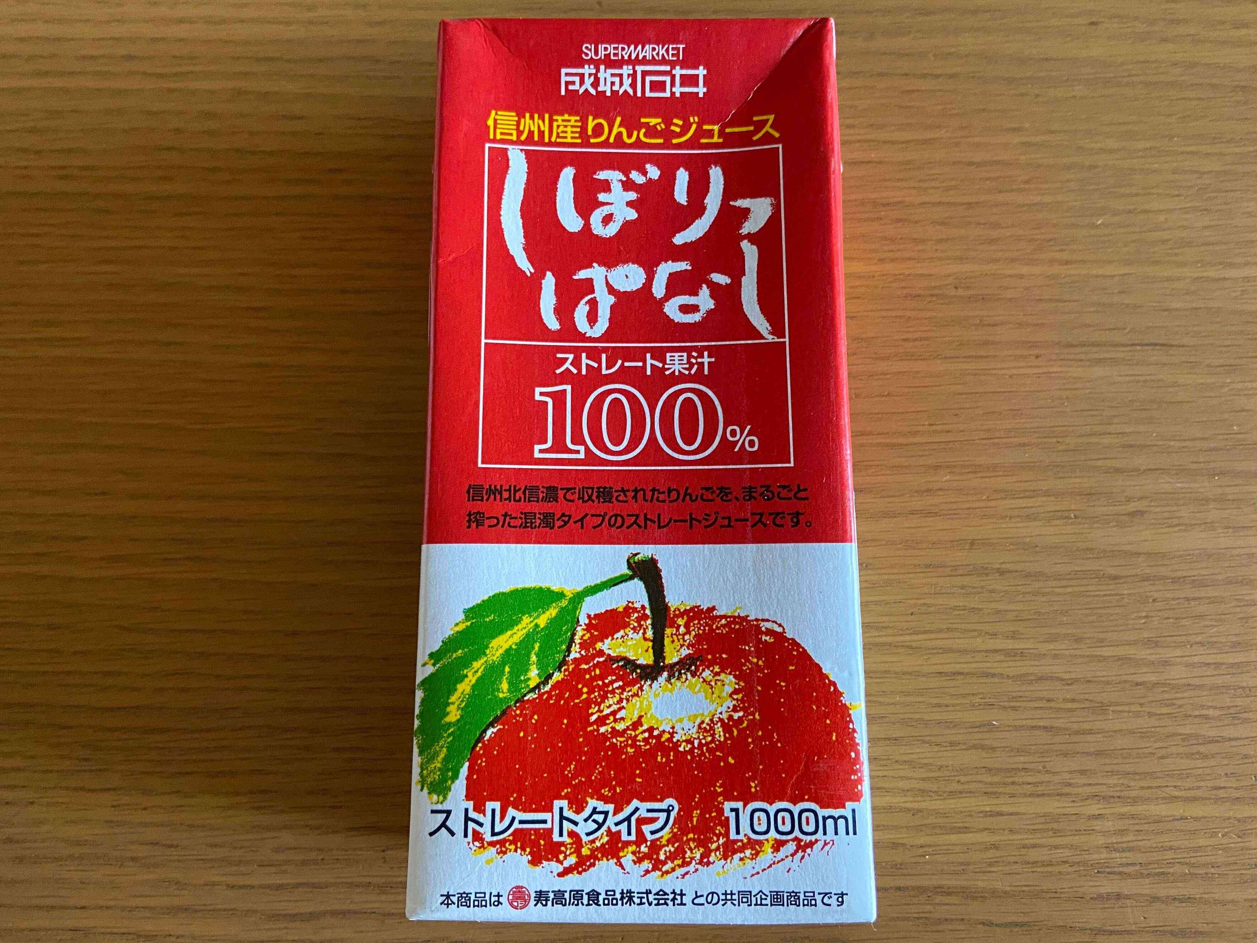 まず紹介するのはこちら「りんごしぼりっぱなし」(購入時:431円)。