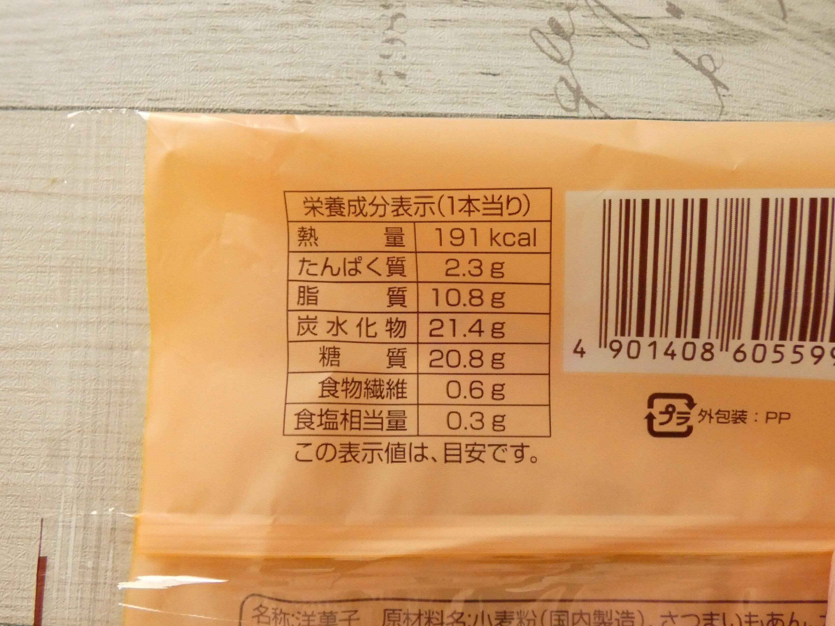 栄養成分表示を見ると1本あたりのエネルギーは191kcal。