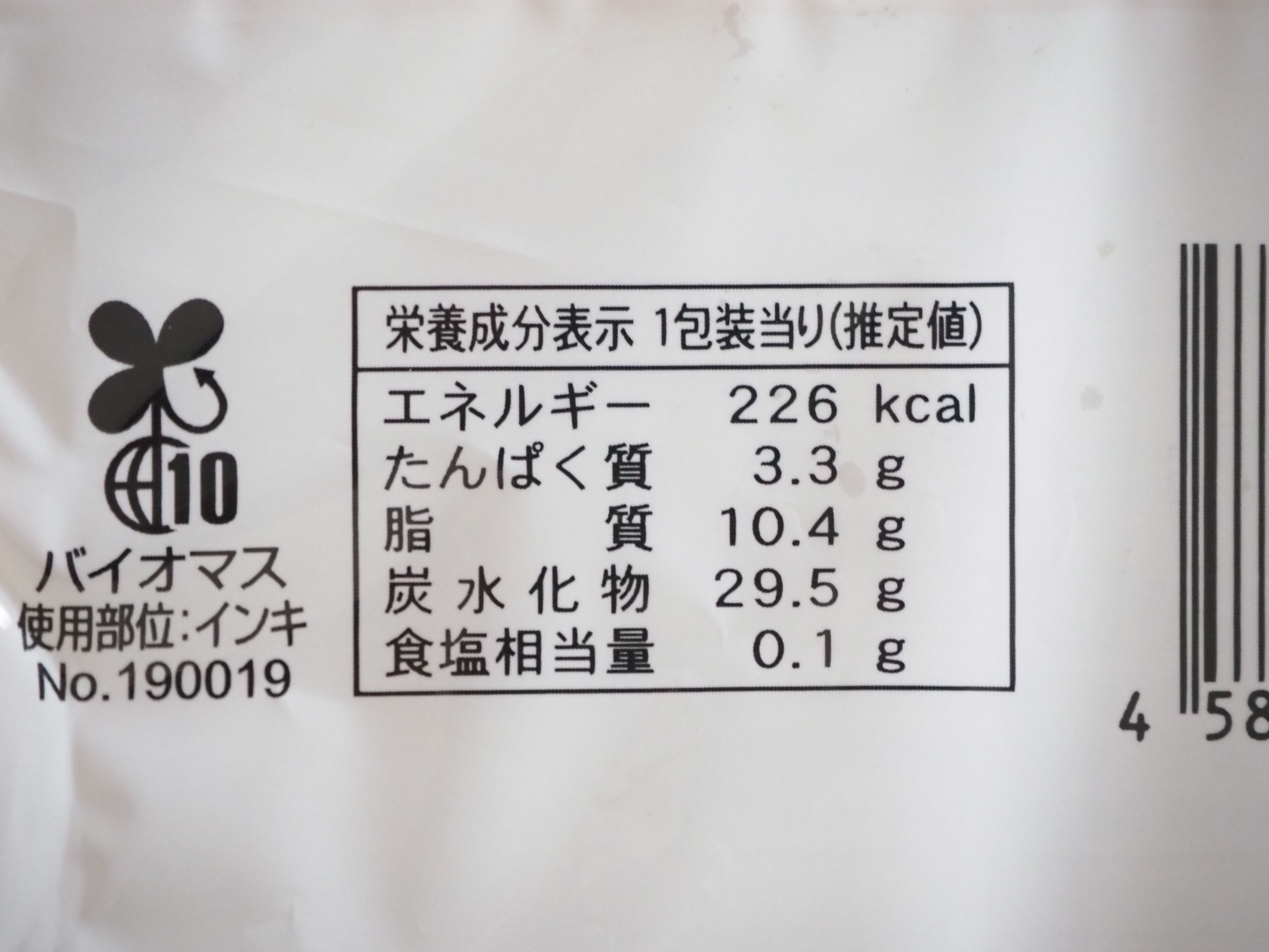 カロリーは226kcalです。私が購入したものの消費期限は、購入日を含む4日でした。