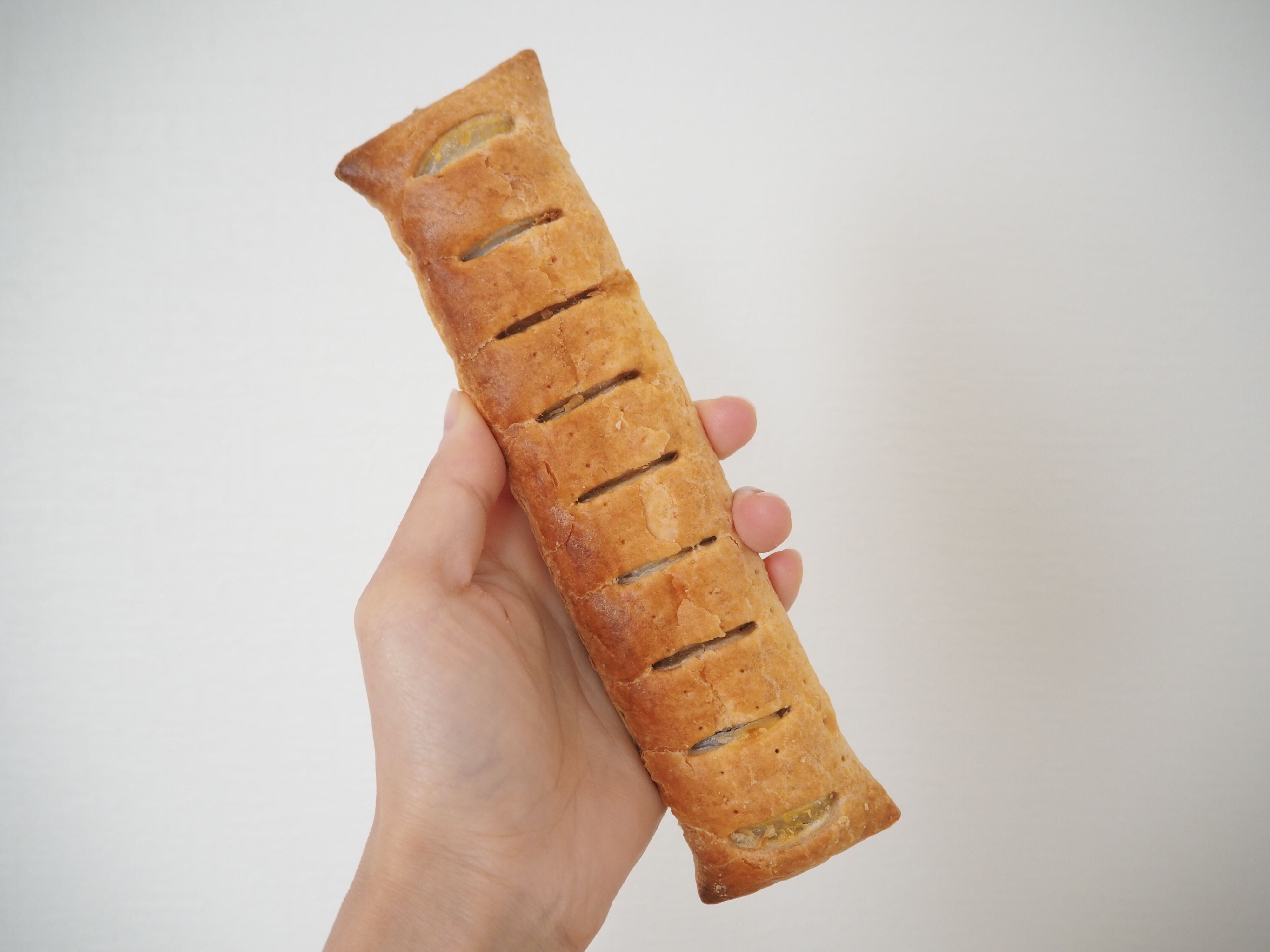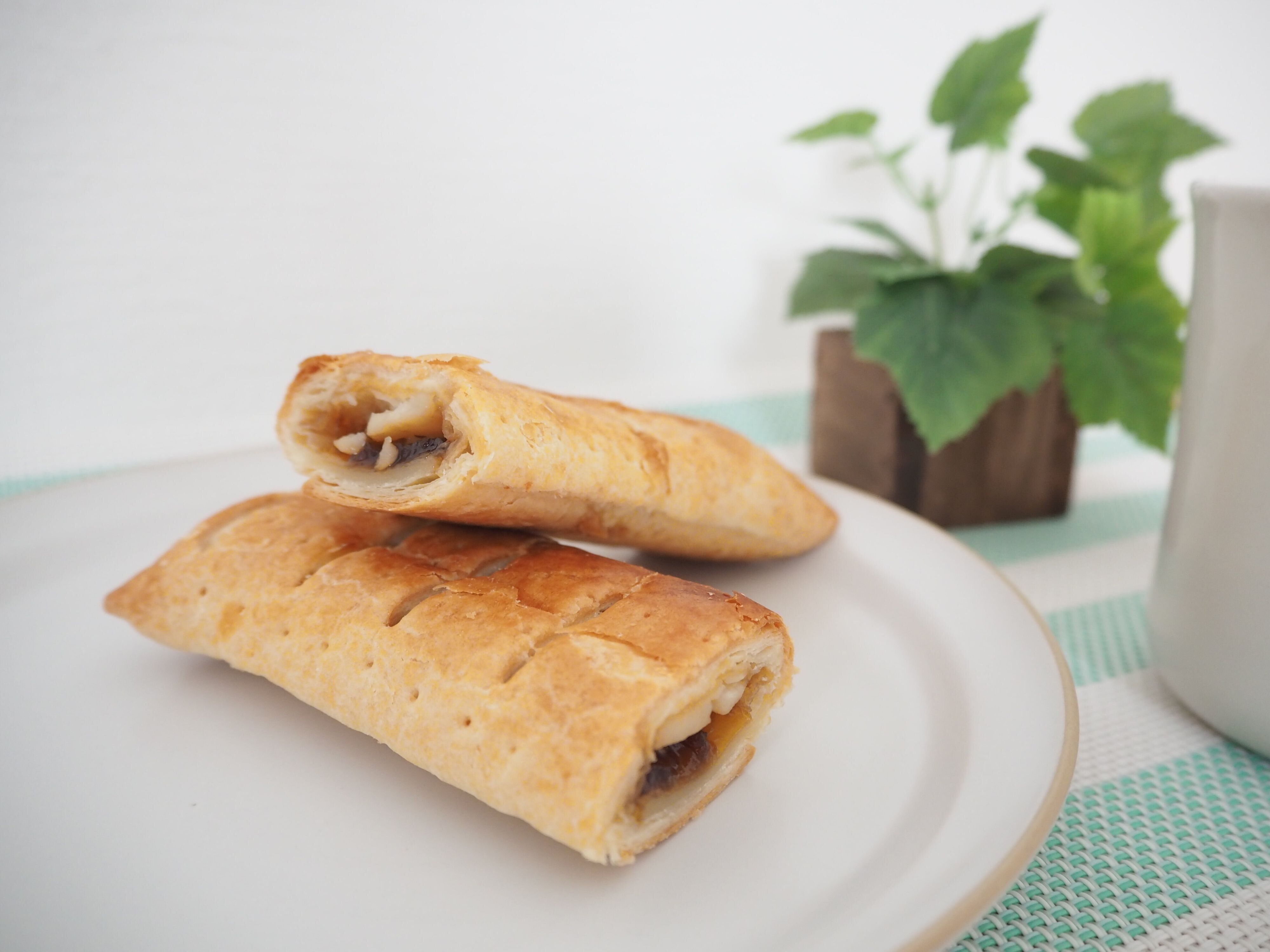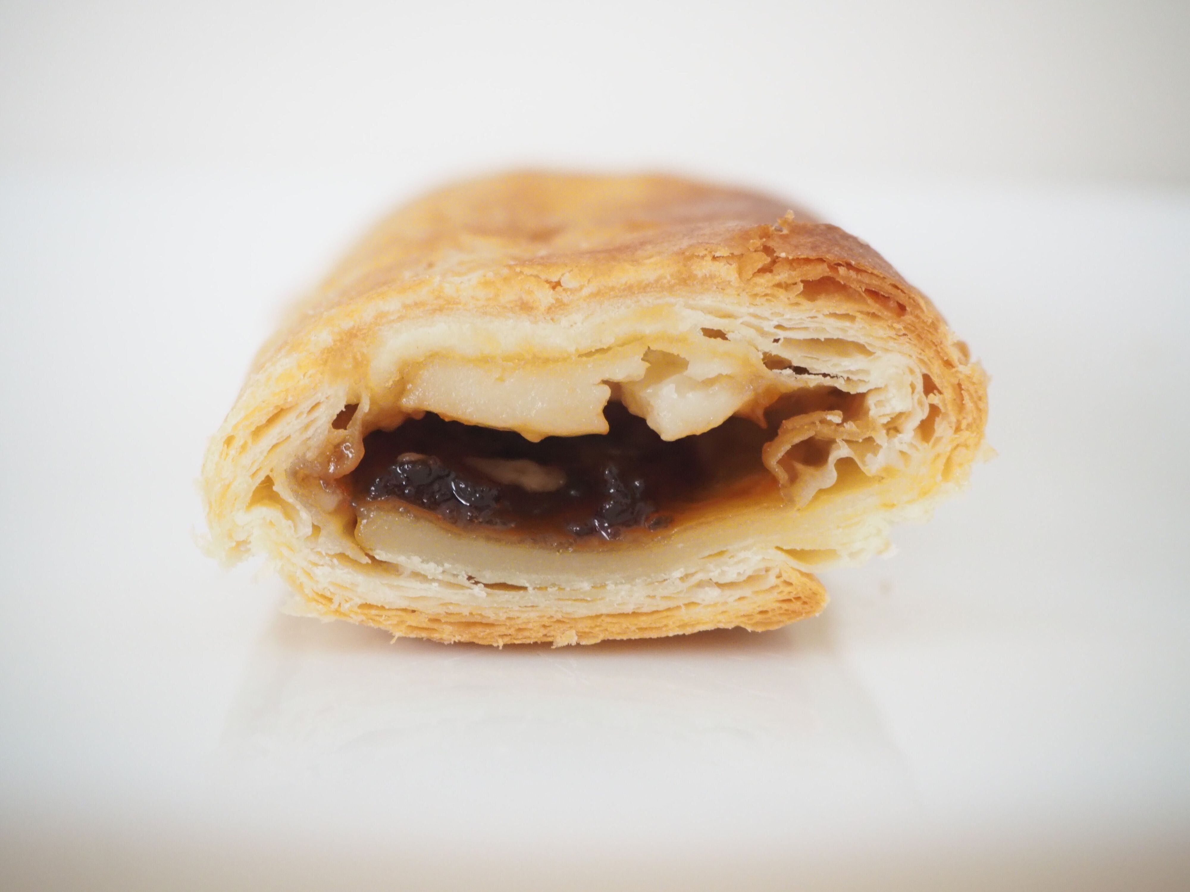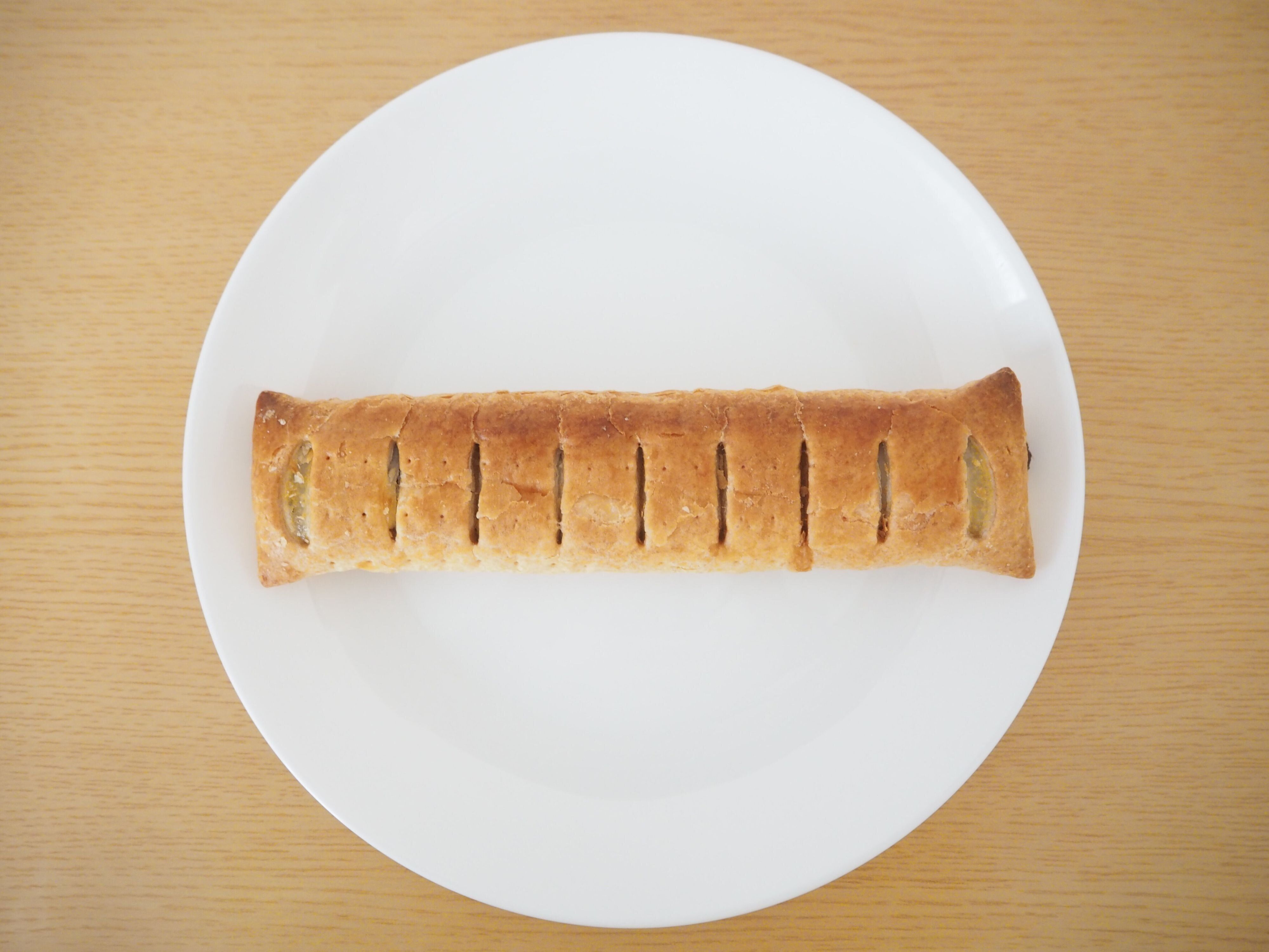 開封したところパイ生地のいい香りがふんわりと漂いました。香りだけでも、十分おいしそうです!表面にはパイ生地らしい空気穴や切込みがあることを確認。