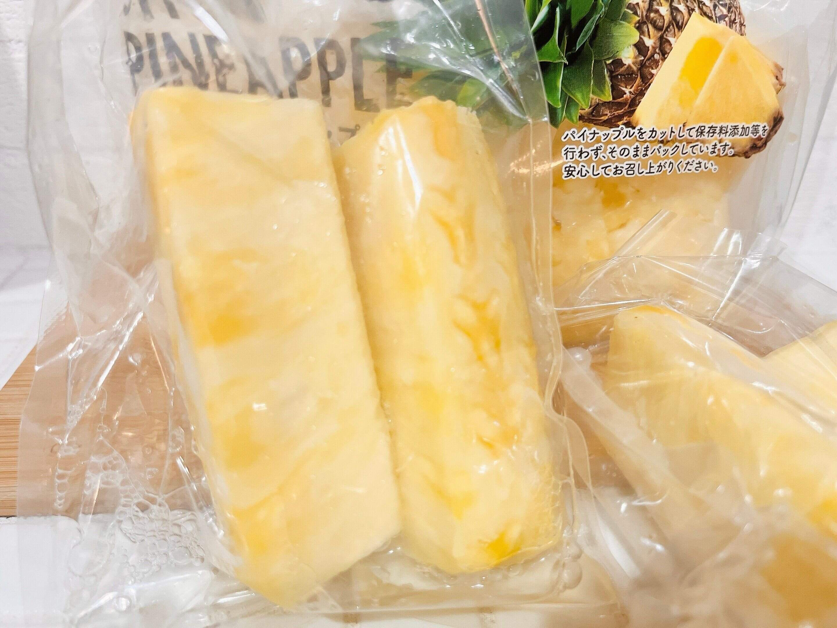 冷蔵コーナーも必ずチェックしますが、今回は試食で食べて美味しくて迷わず購入した『スティックパイナップル』をご紹介します。