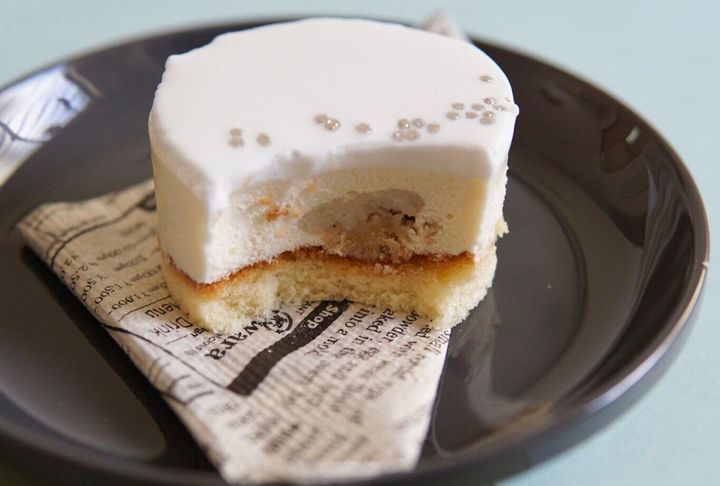 しかし、中を開けて見てみると、スポンジの上にクッキーナッツ、更にその上にはバニラガナッシュがのっており、五層になっていました。シンプルに見えて奥深いバニラケーキです。