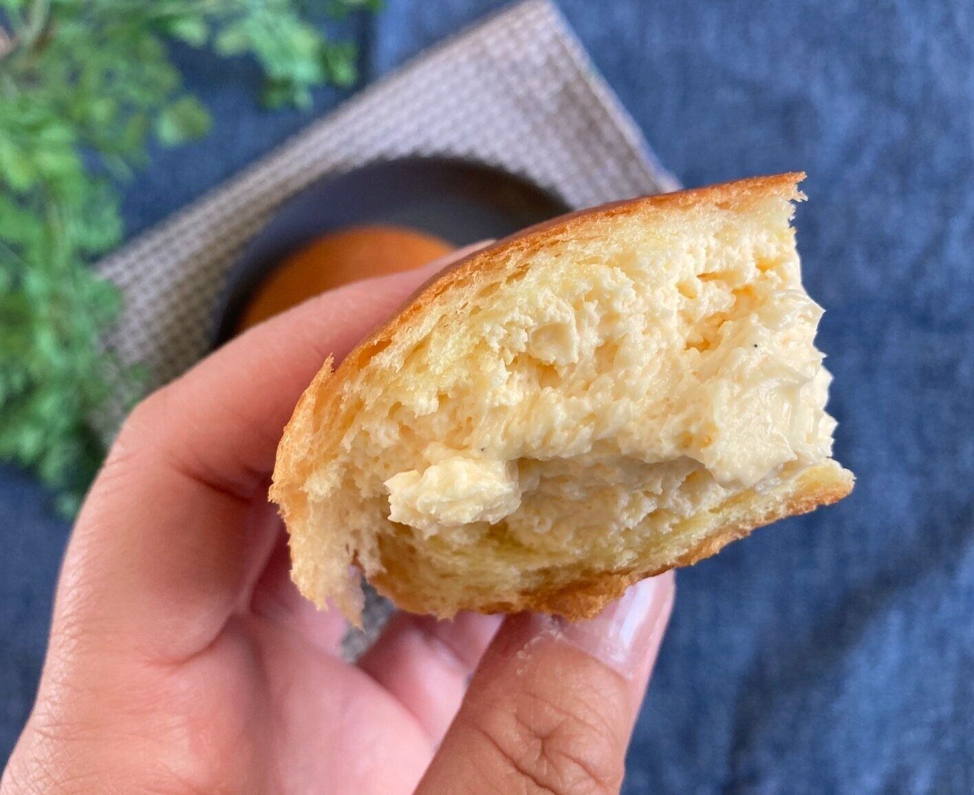 クリームを包んでいるパンは、表面がつやっとしていて焼き色も美味しそう。黄味が強めで、柔らかすぎることがなく、でもふわっとしっとり、ほんのり味がついています。