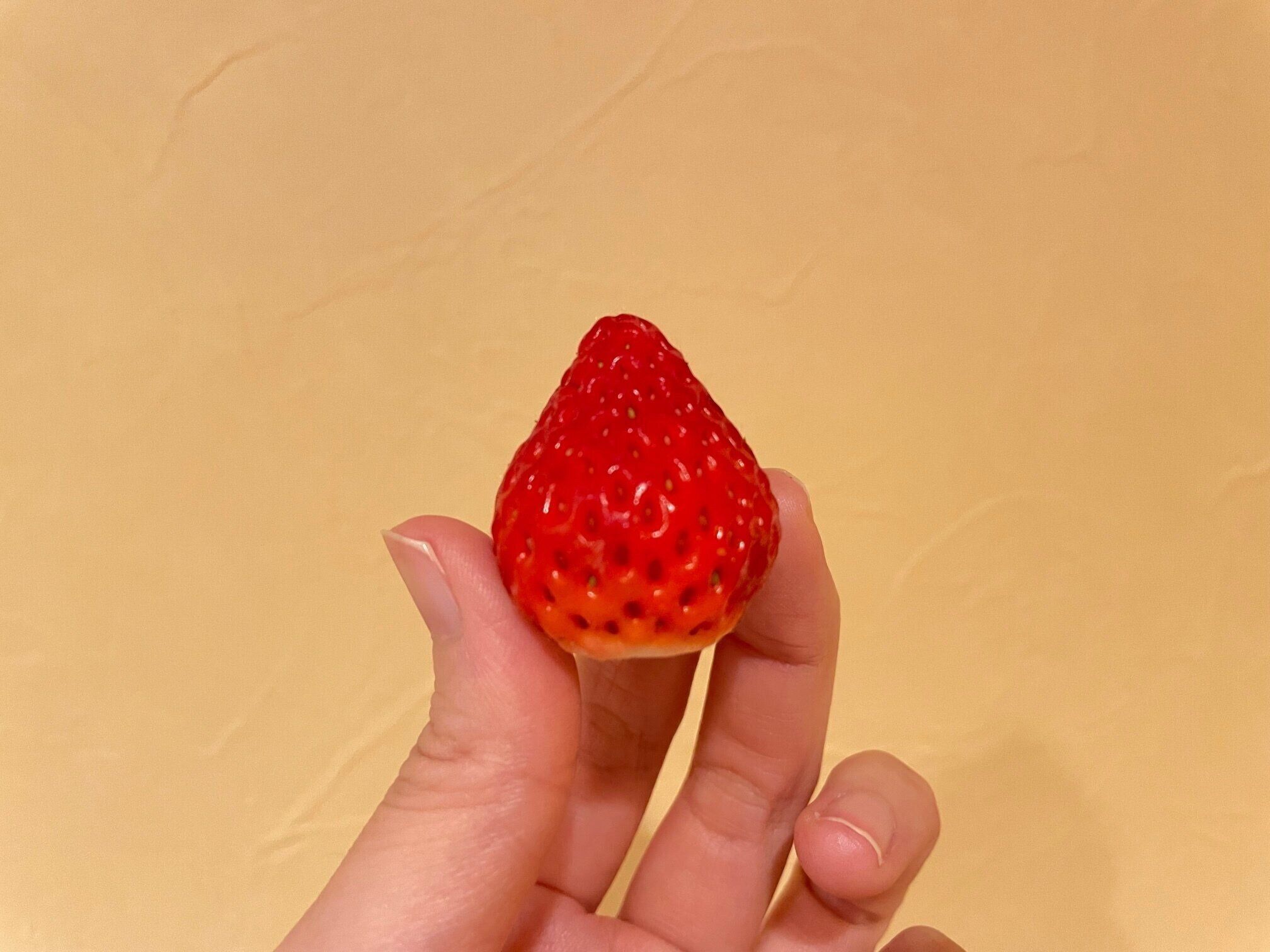 苺の糖度は下に集まり、ヘタの部分と先の部分では甘さがまったく違うそうです。